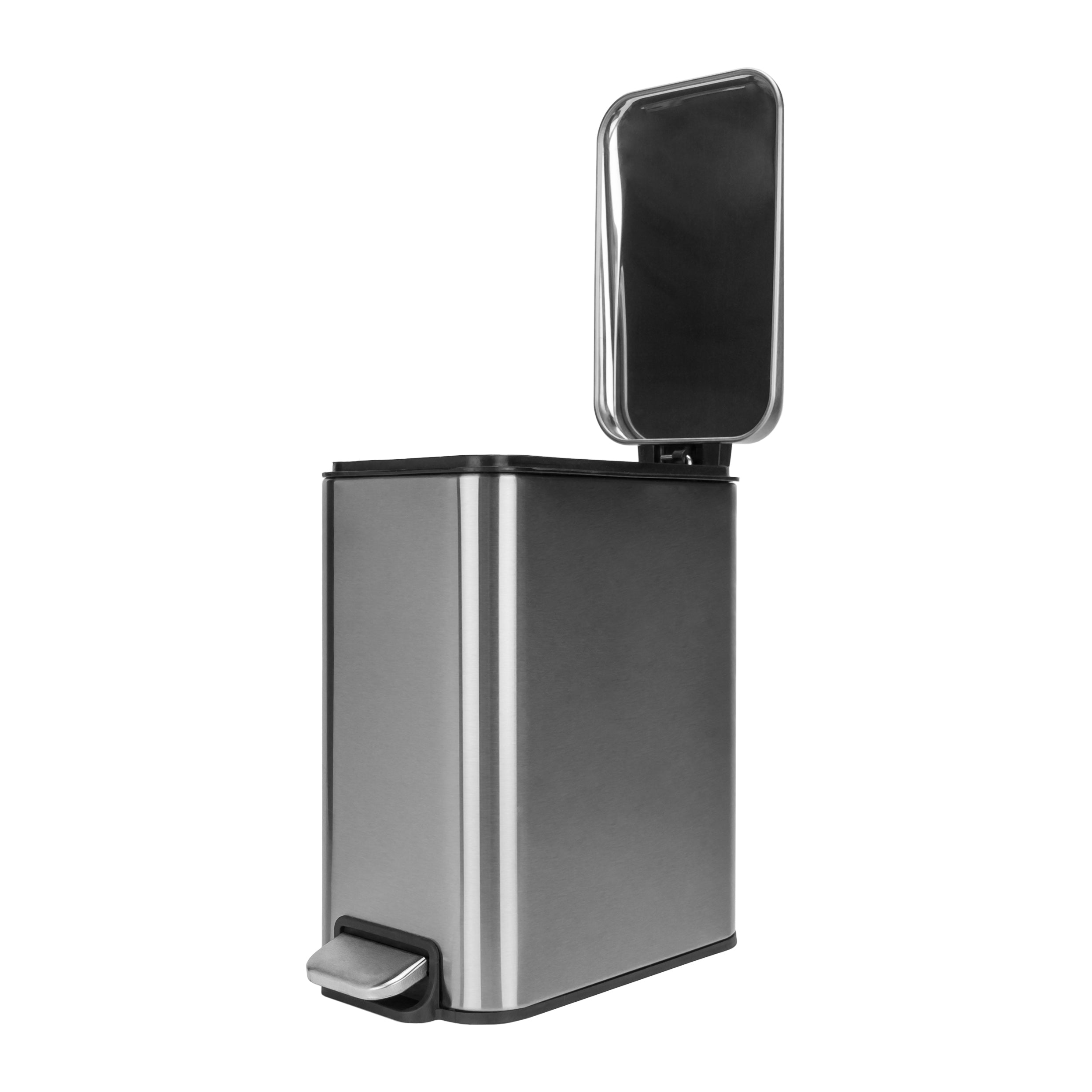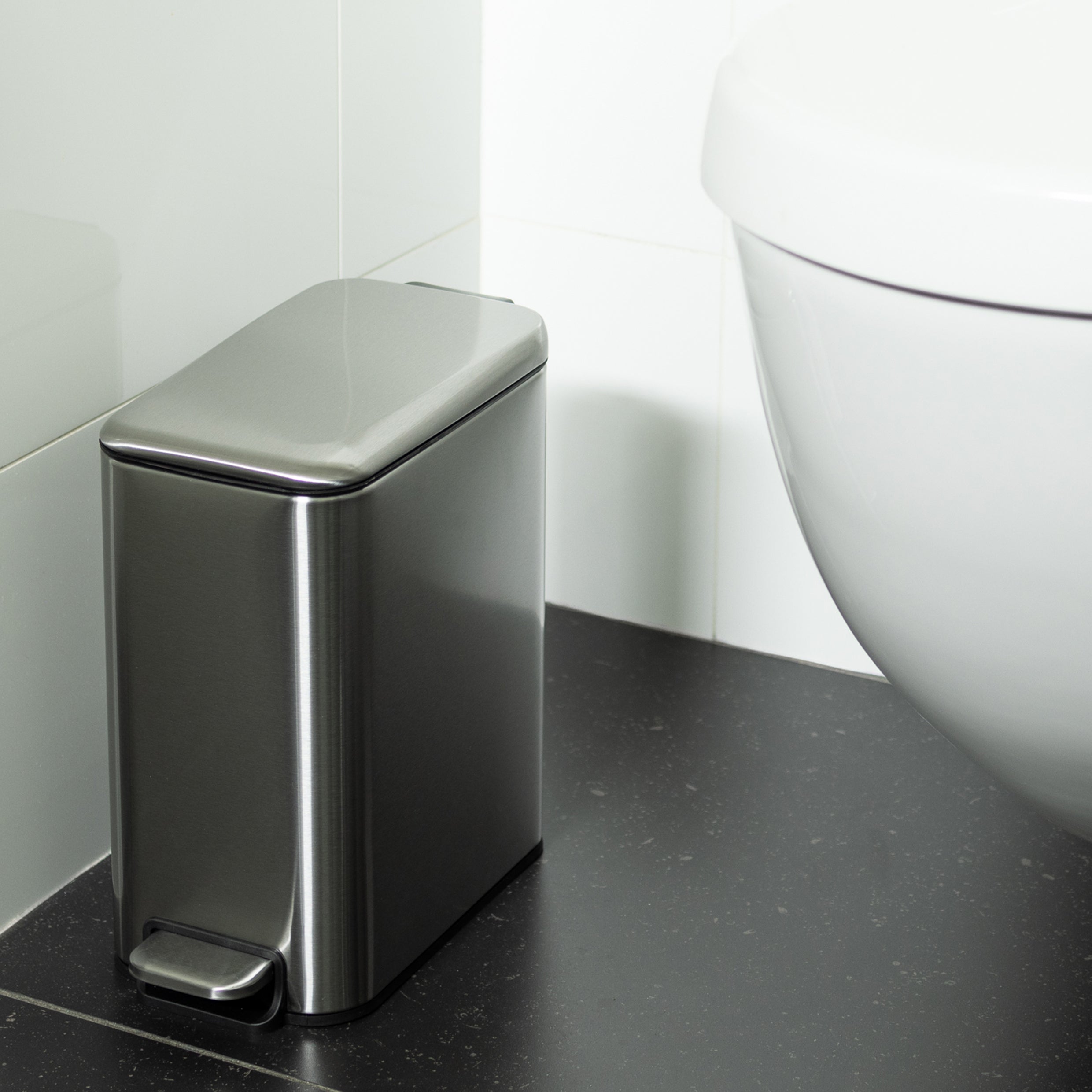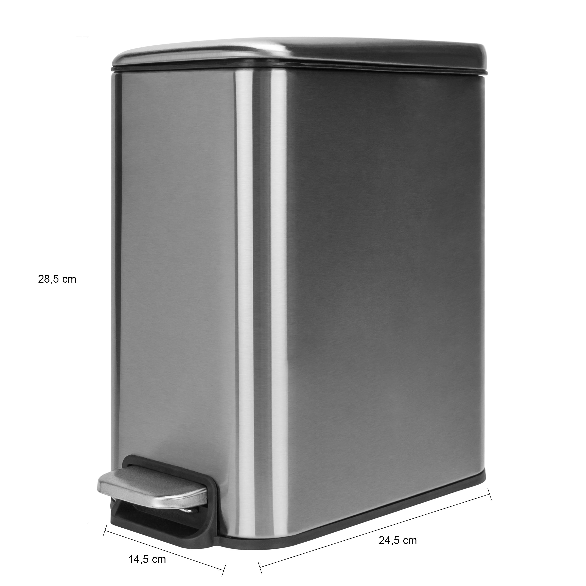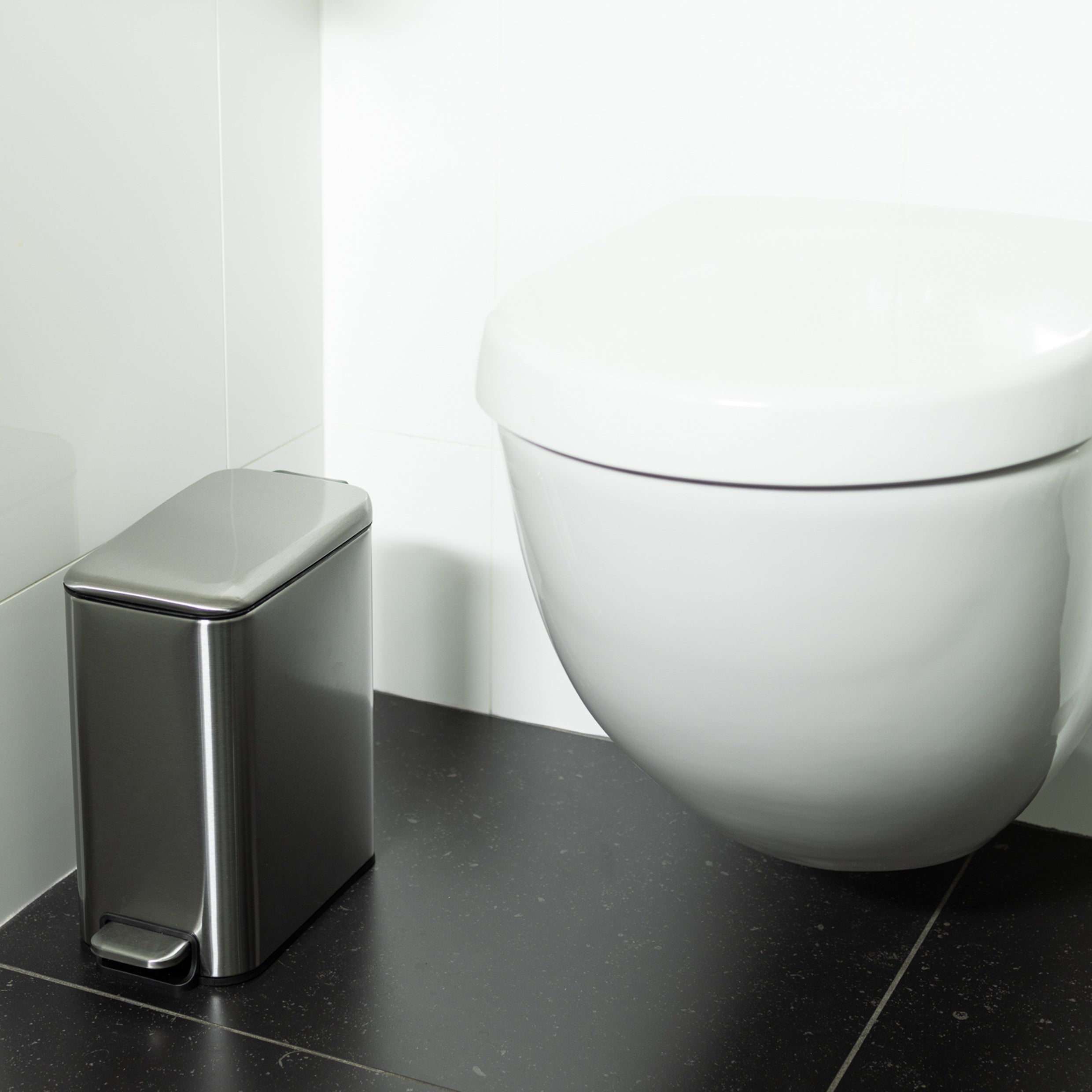 - Met een inhoud van 5 liter heeft deze pedaalemmer een bescheiden maatje, waardoor het overal in huis past.