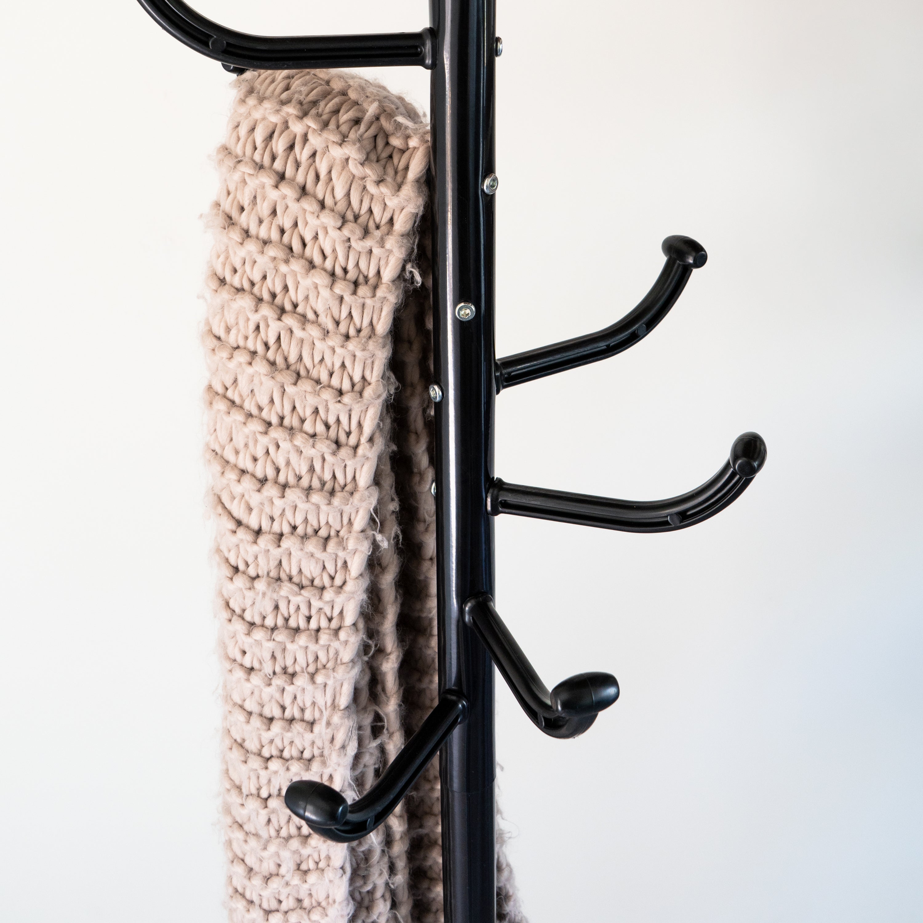 - In totaal heeft de kapstok acht haken. Hier kun je jassen, tassen en sjaals aan ophangen.