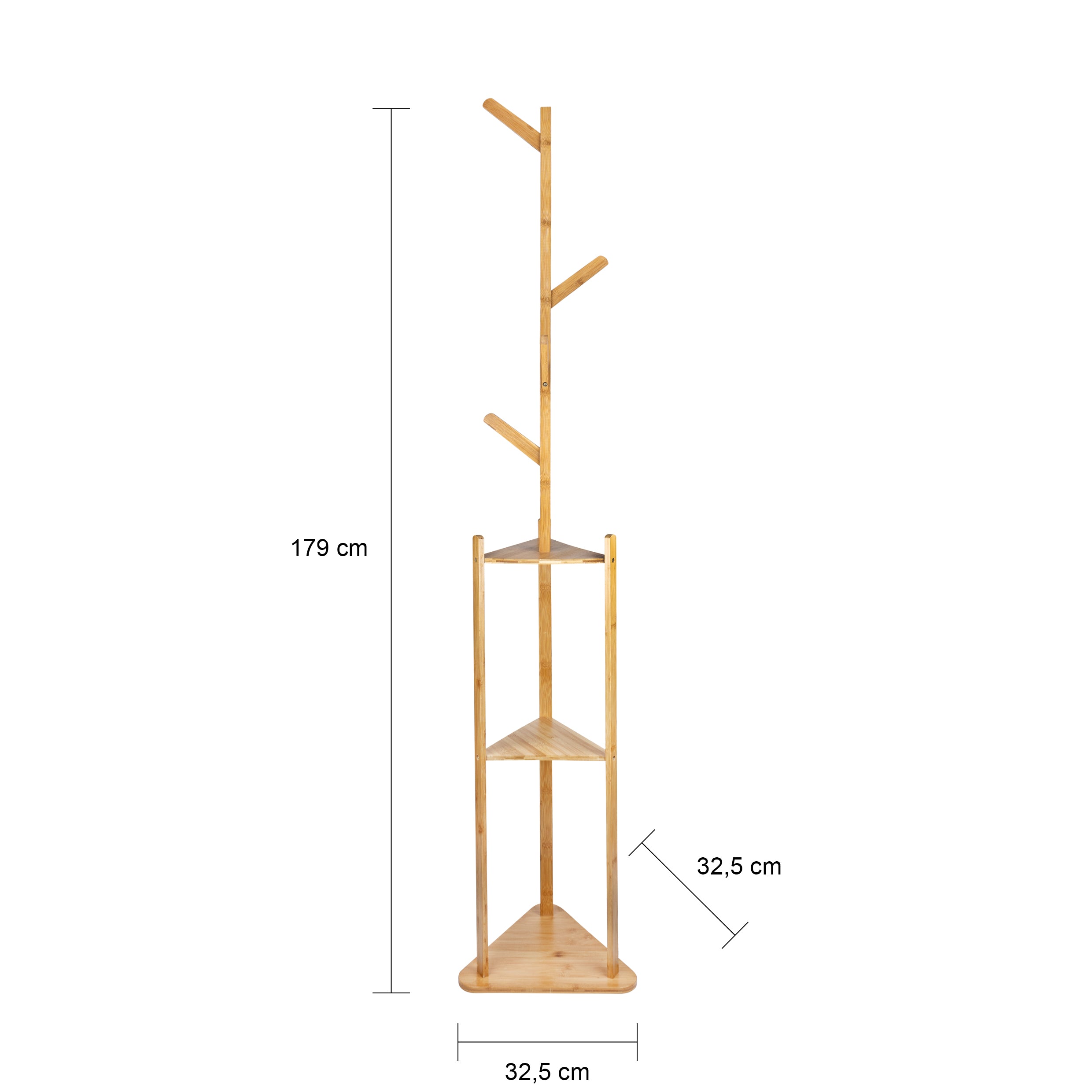 - Deze staande kapstok heeft vijf haken voor jassen, sjaals en hoeden, maar ook twee legplanken waar je je schoenen op kwijt kunt.