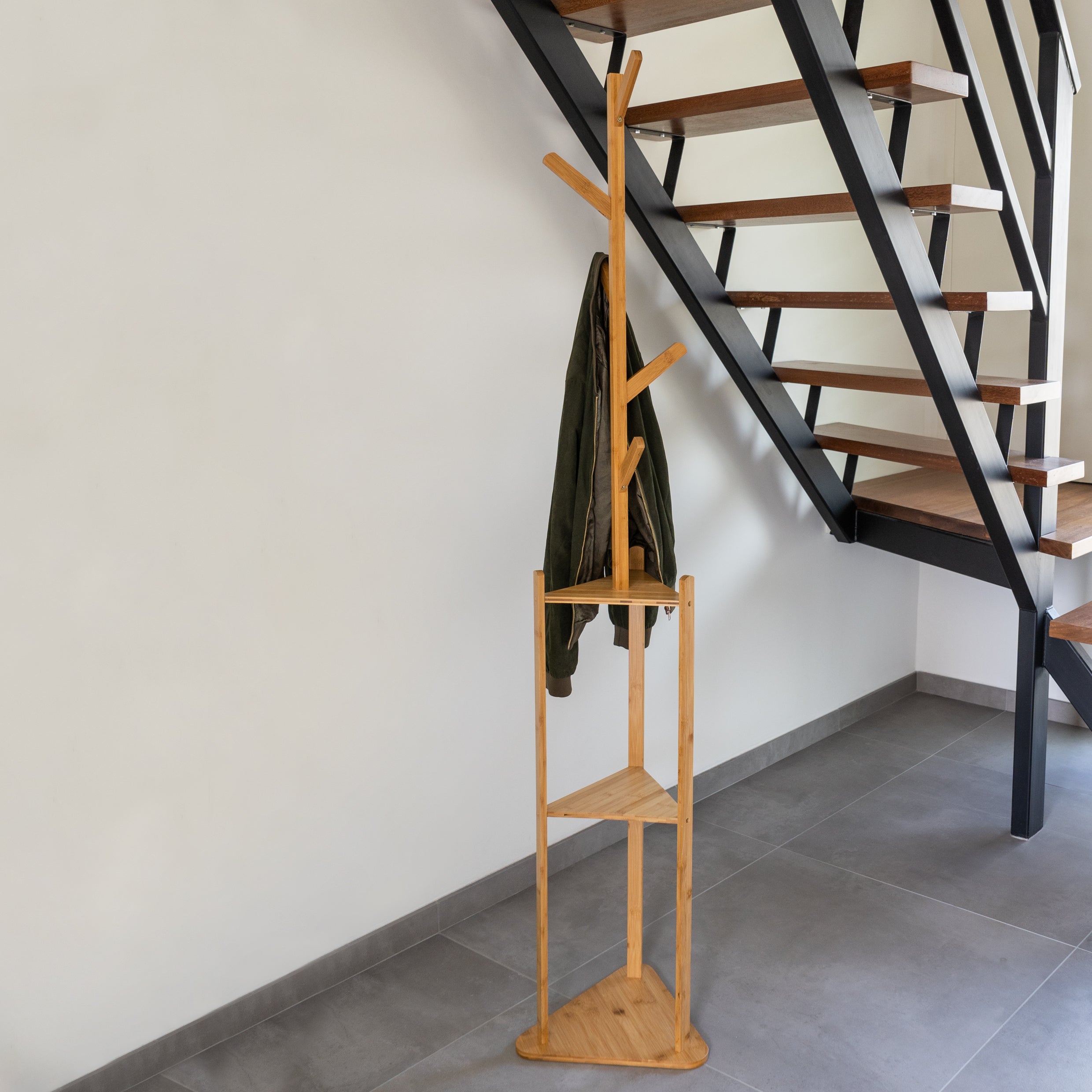 - Dankzij de driehoekige basis, staat de kapstok stevig op de vloer.