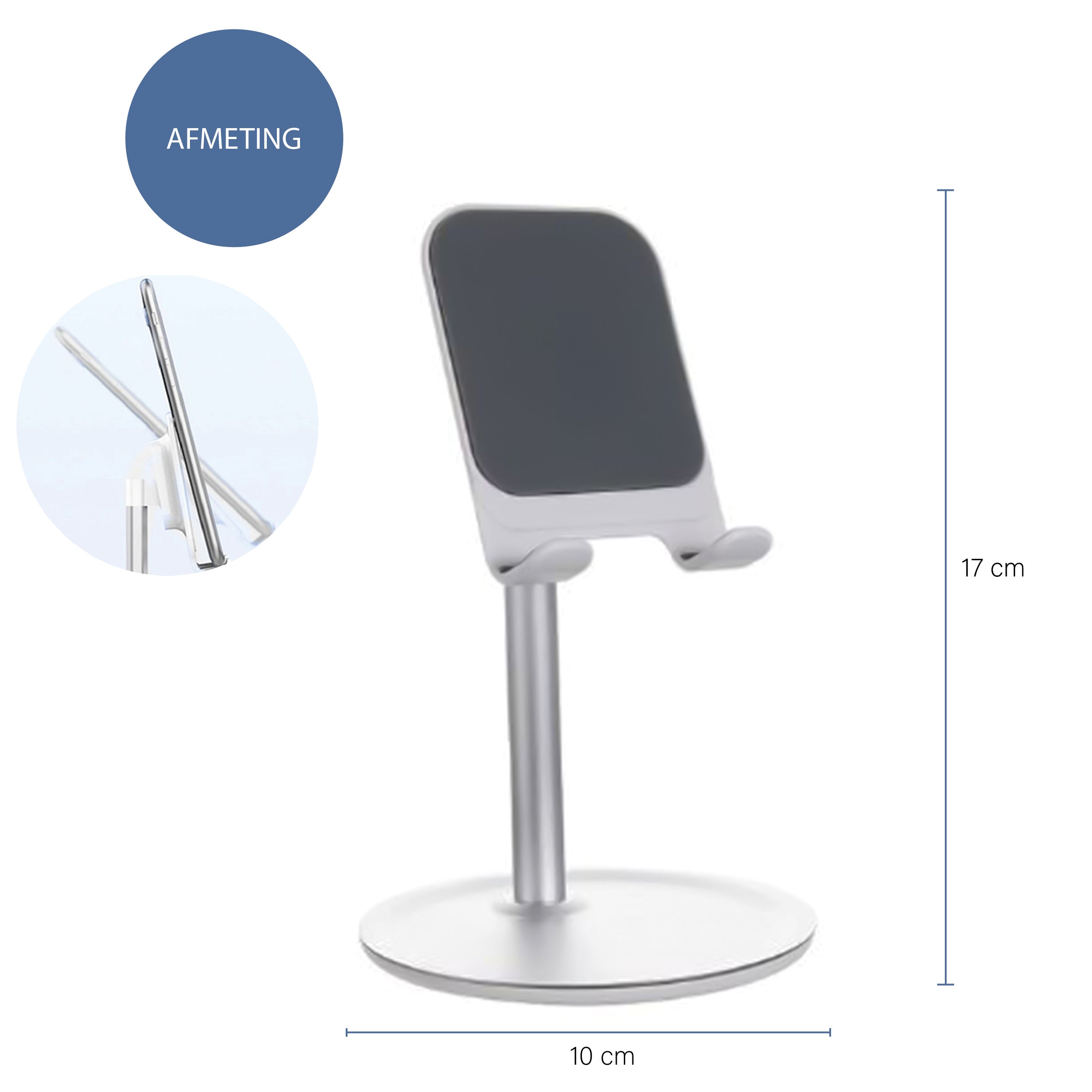 - Deze mooie aluminium houder kan zowel als telefoonstandaard als als tablethouder gebruikt worden.