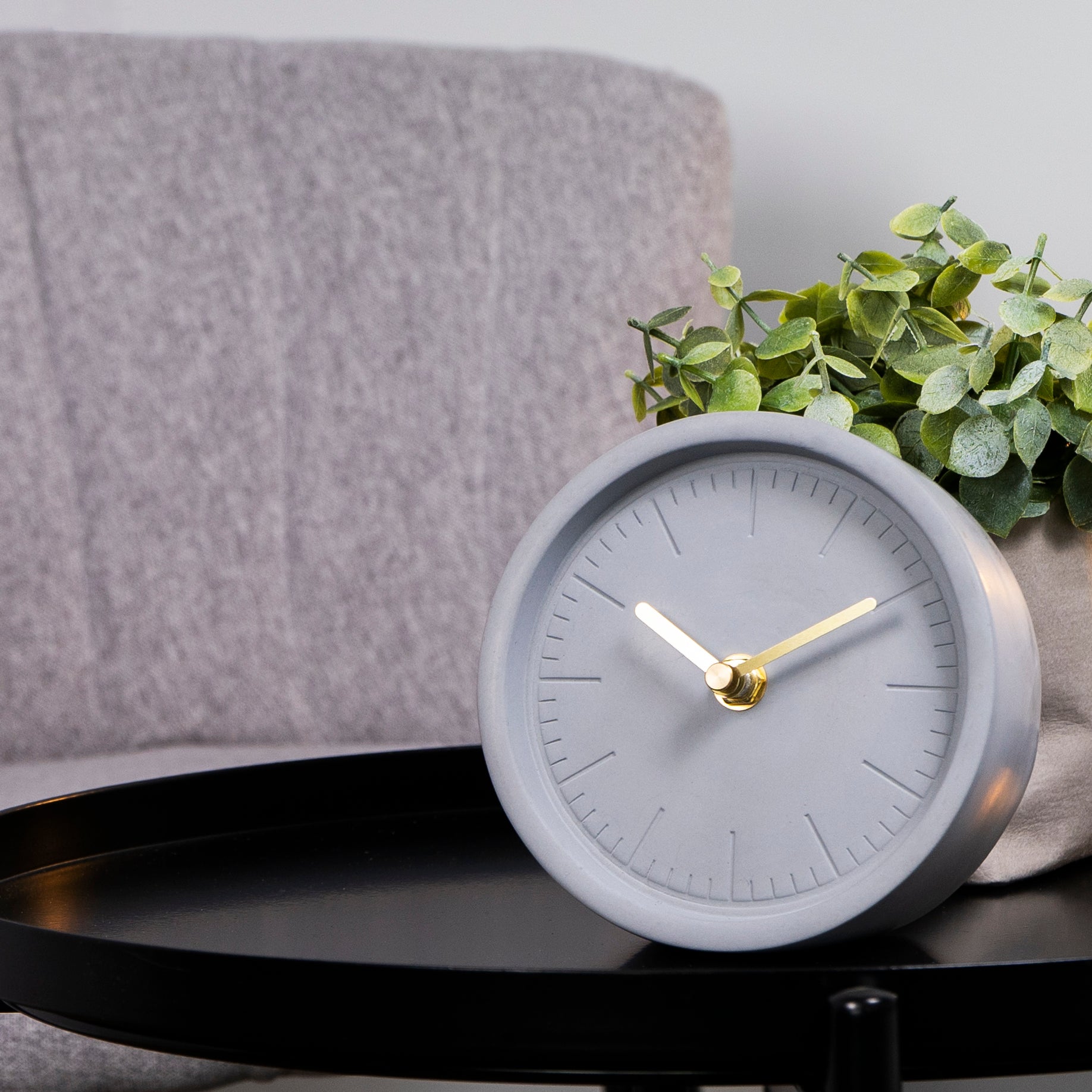 - Deze stoere tafelklok van beton past perfect op je strakke bureau en valt niet snel om.