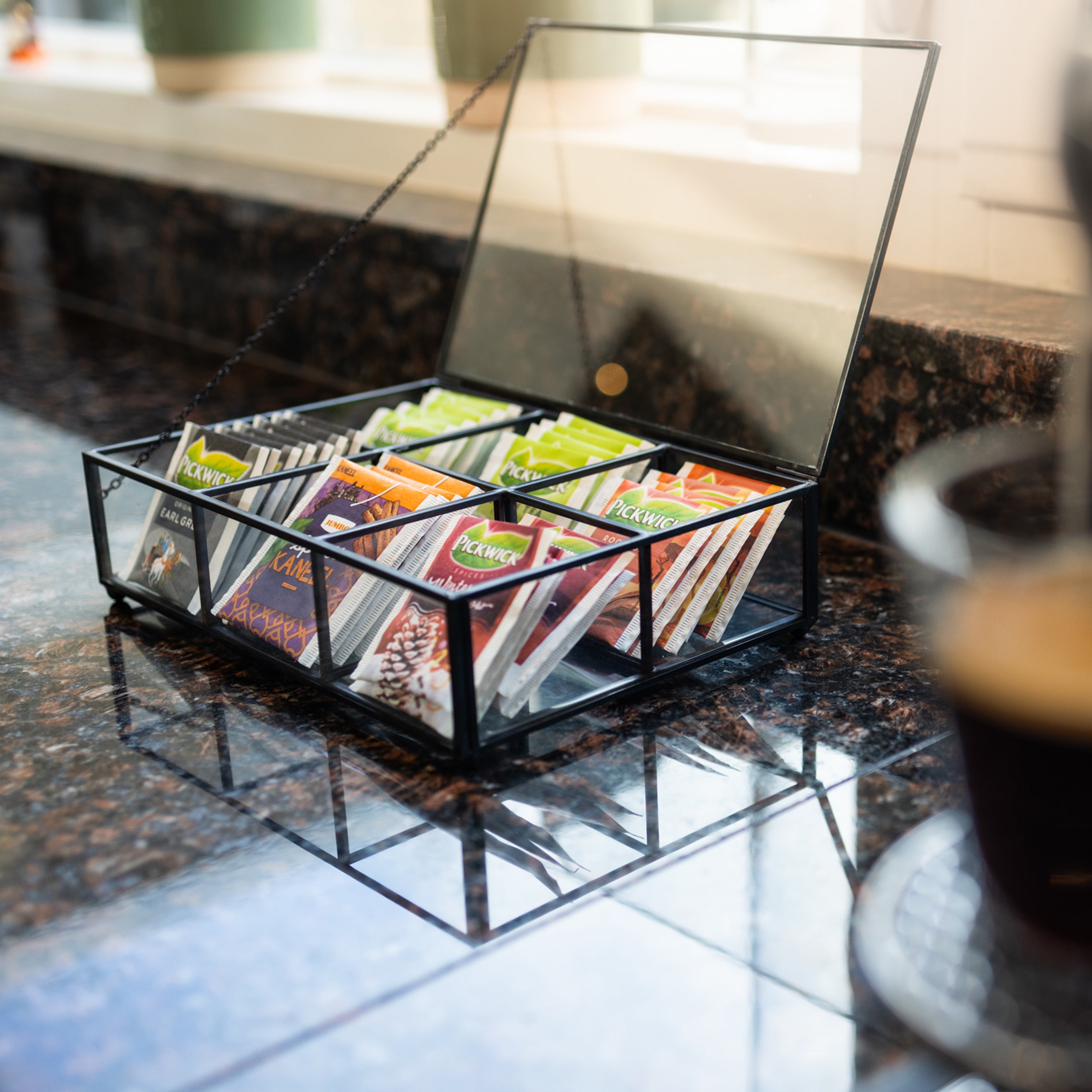 - Zwart frame met transparant glas