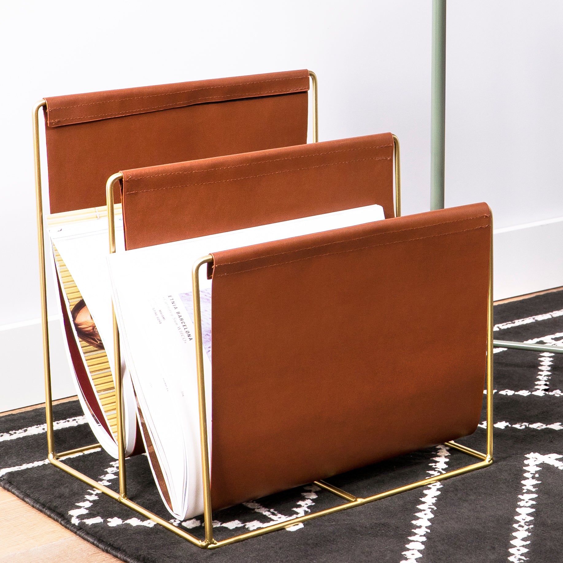 - Het frame van het tijdschriftenrek is gemaakt van metaal. Hierdoor weet je zeker dat het rek stevig genoeg is voor het opbergen van veel leesvoer.