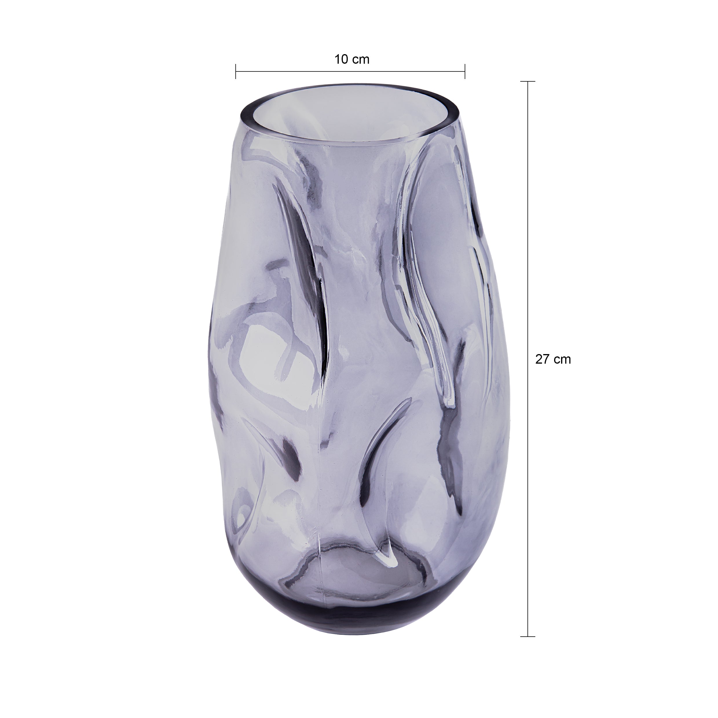 Uniek ontwerp De vaas grijs onderscheidt zich door zijn unieke ingedeukte ontwerp, wat zorgt voor een moderne en artistieke uitstraling. Het smoke grijze glas voegt een vleugje mysterie en elegantie toe, waardoor deze vaas een echte eyecatcher is in je woonkamer, slaapkamer of kantoor.