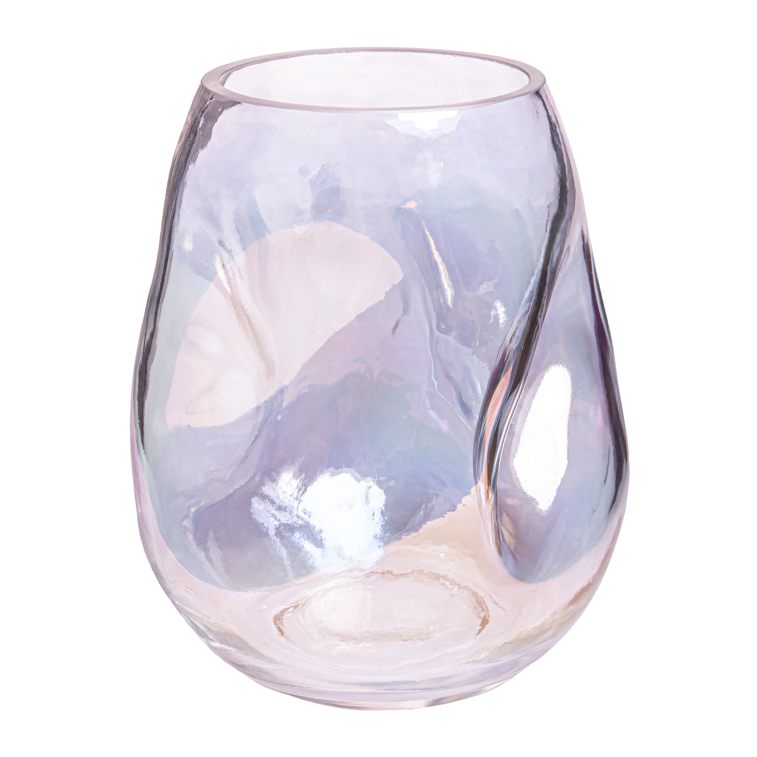 Ontwerp en stijl De ingedeukte vorm van deze vazen geeft een speels en modern tintje aan je interieur. De parelmoer vaas zorgt met zijn iriserende glans voor een subtiele regenboogkleur die het design nog levendiger maakt. Het compacte formaat en veelzijdige ontwerp maken deze glazen vaas geschikt voor zowel moderne als klassieke interieurs.
