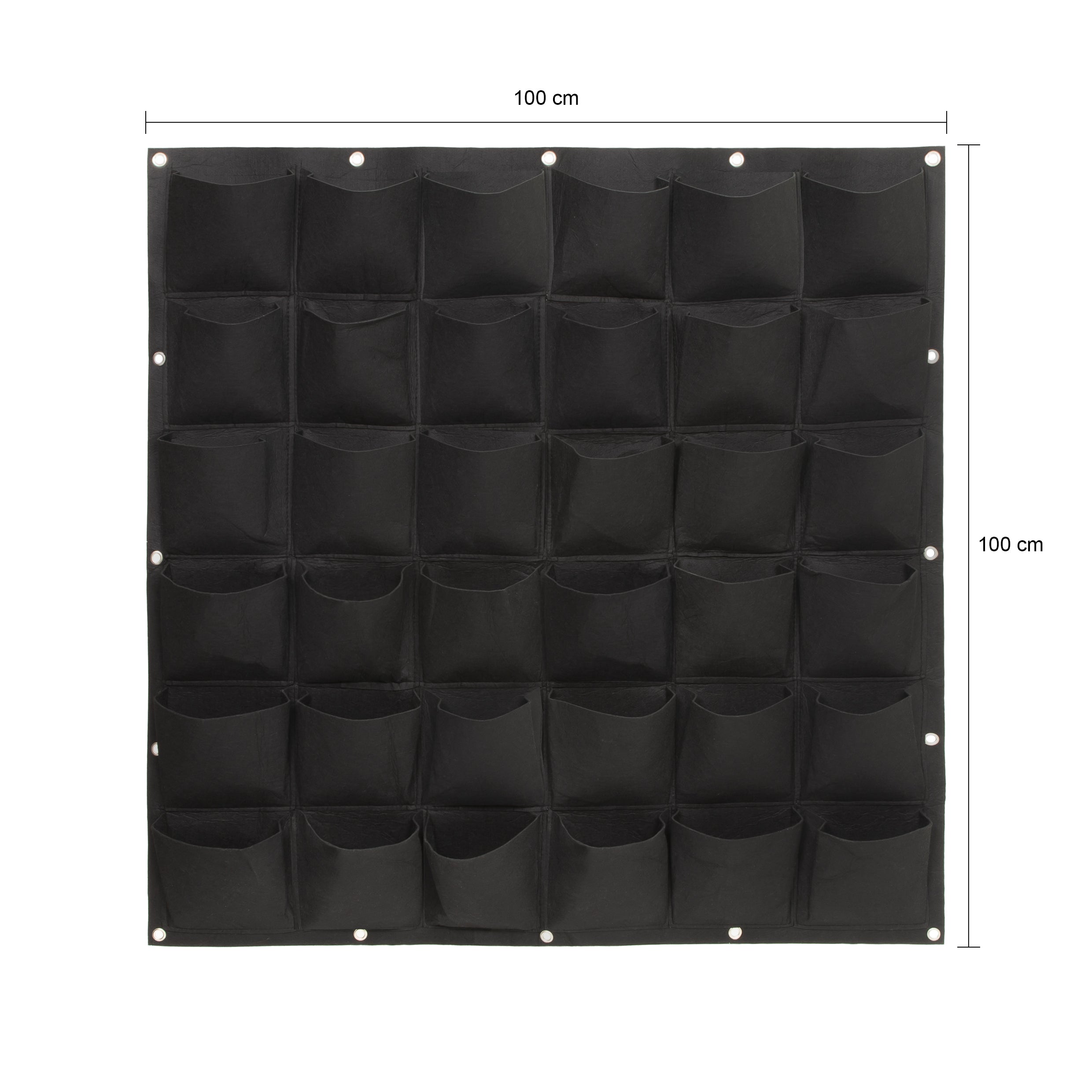 Heb jij een kleine buitenruimte, zoals een balkon of kleine stadstuin, en wil je de ruimte optimaal benutten? Dan is een verticale plantenwand een uitstekend idee. Je hangt de verticale tuin aan een muur of schutting en vult deze met al jouw favoriete planten en bloemen. Het aanleggen van zo’n verticale plantenwand kan heel eenvoudig met deze verticale tuin van QUVIO. Je hangt de vilten plantenbak door de versterkte ogen heel gemakkelijk op en vult deze vervolgens naar eigen inzicht. Specificaties