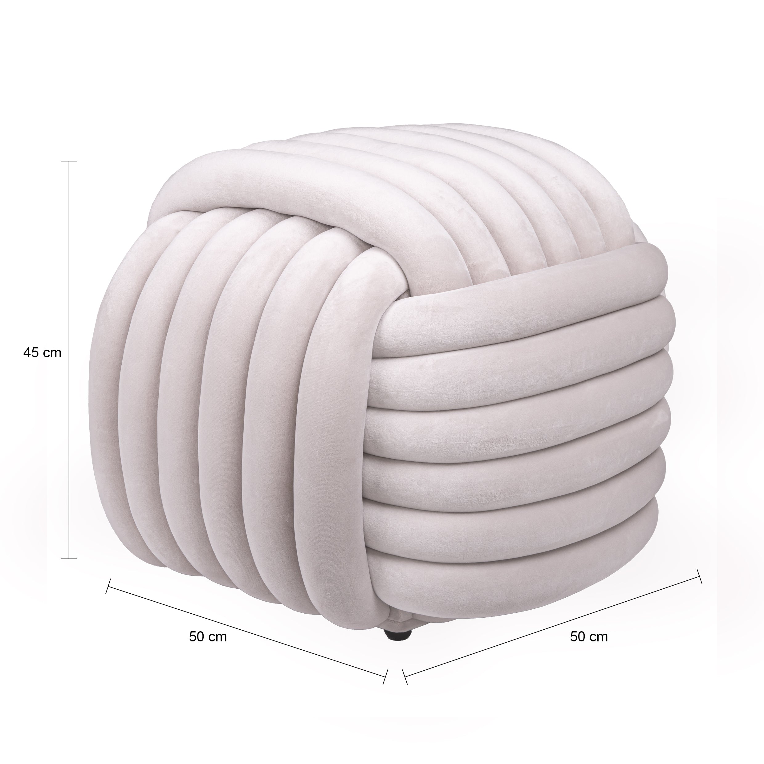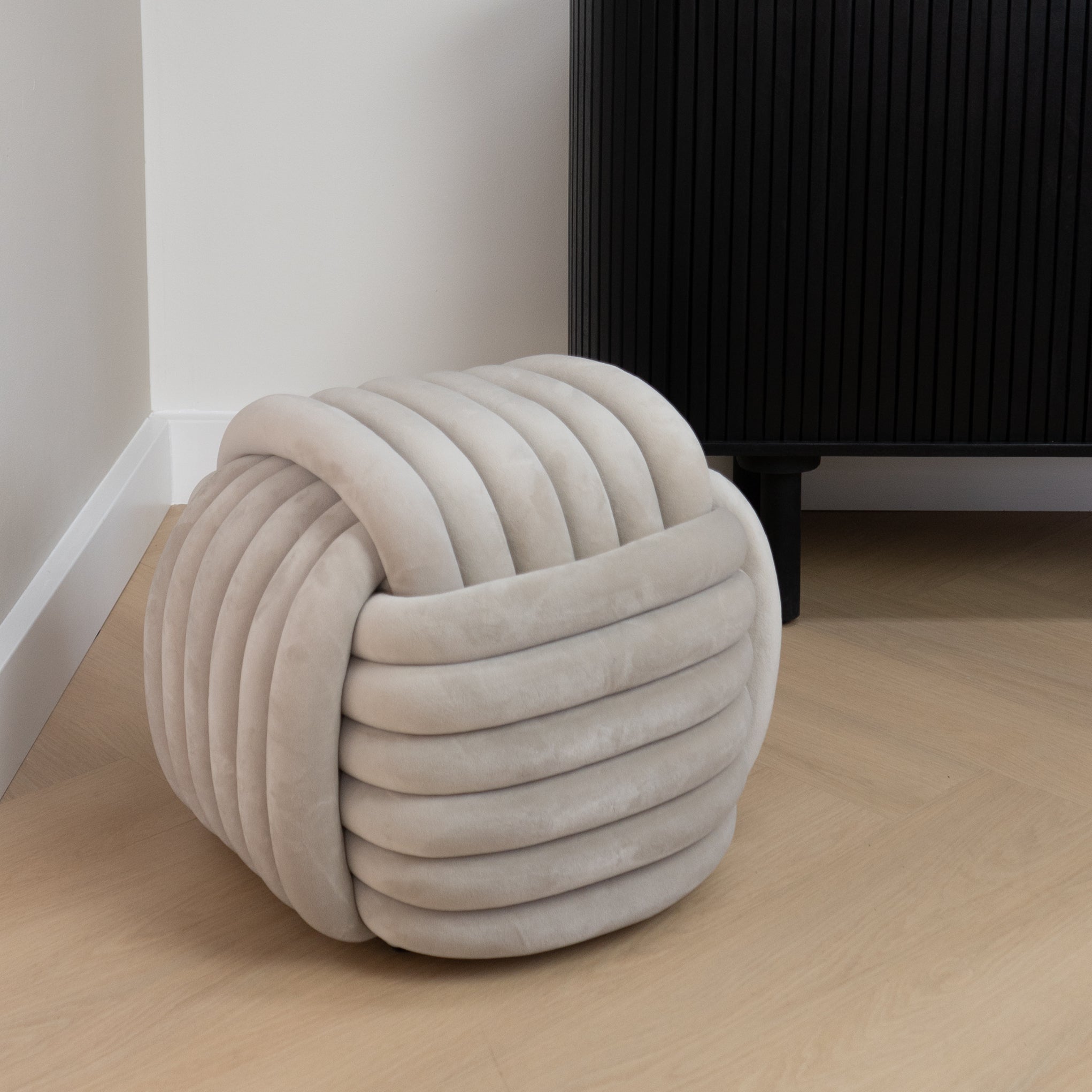 Uniek en decoratief knoopontwerp Deze beige poef onderscheidt zich door zijn unieke knoopontwerp, wat zorgt voor een speelse maar stijlvolle uitstraling. Het zachte polyester materiaal voelt heerlijk comfortabel aan, waardoor je graag op dit poefje zult neerploffen. Deze poef is niet alleen functioneel, maar ook een opvallend decoratiestuk in je interieur.