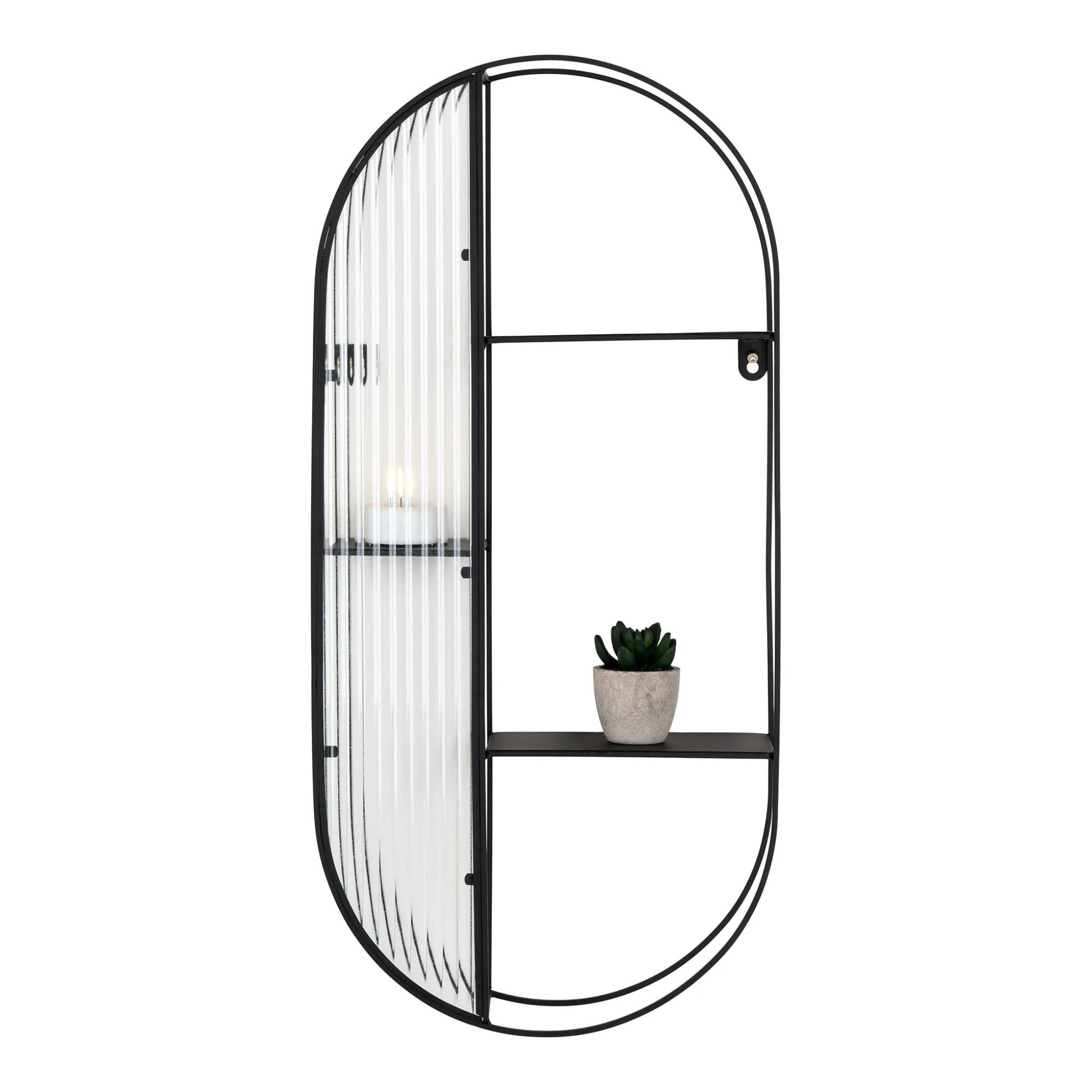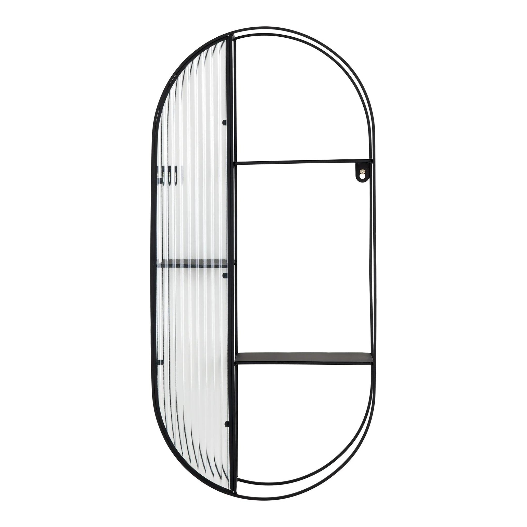 Creëer meer opbergruimte met dit zwarte stalen wandrek met drie glazen planken Dit wandrek van QUVIO, model Mila, is de perfecte combinatie van stijl en functionaliteit. Het wandrek zwart is gemaakt van stevig staal en glas, waardoor het een robuuste en moderne uitstraling heeft. Dankzij het ovale ontwerp en de drie glazen planken biedt dit stalen wandrek voldoende ruimte voor je favoriete decoraties, boeken of planten. Het minimalistische en strakke design maakt dit zwart wandrek geschikt voor elke ruimte in huis, van de woonkamer tot de hal of slaapkamer.