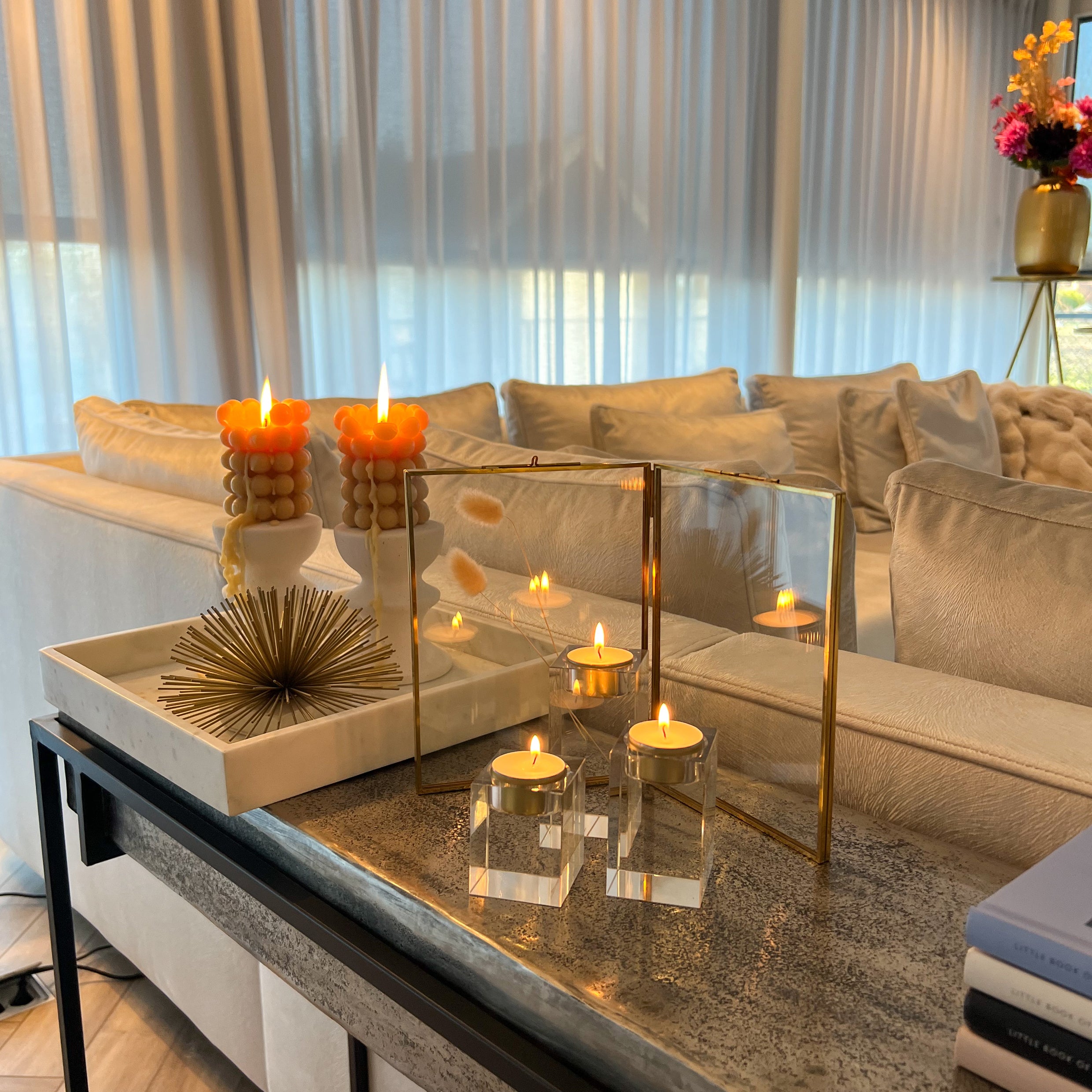 - De glazen kaarsenhouders zijn transparant, waardoor ze heel eenvoudig met diverse andere accessoires te combineren zijn.