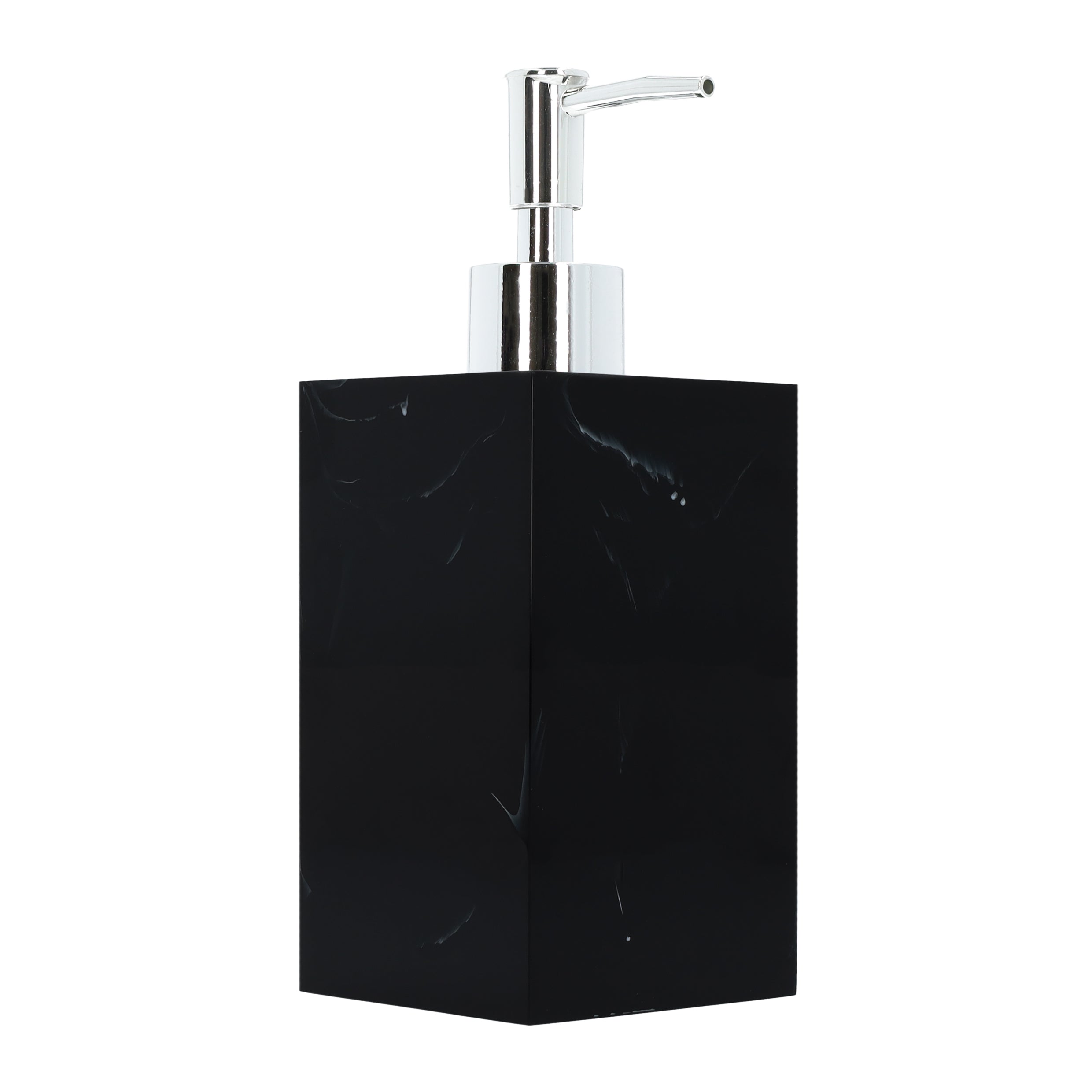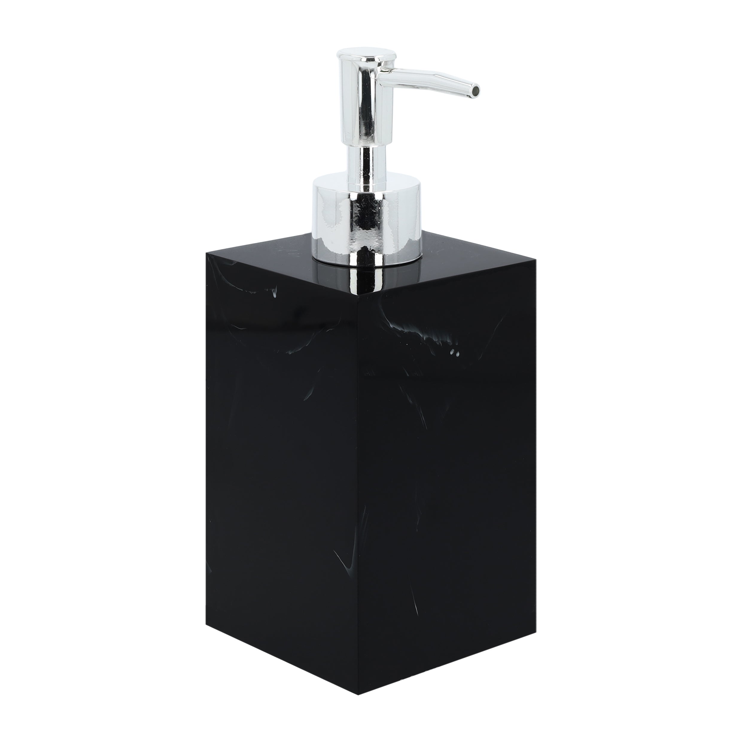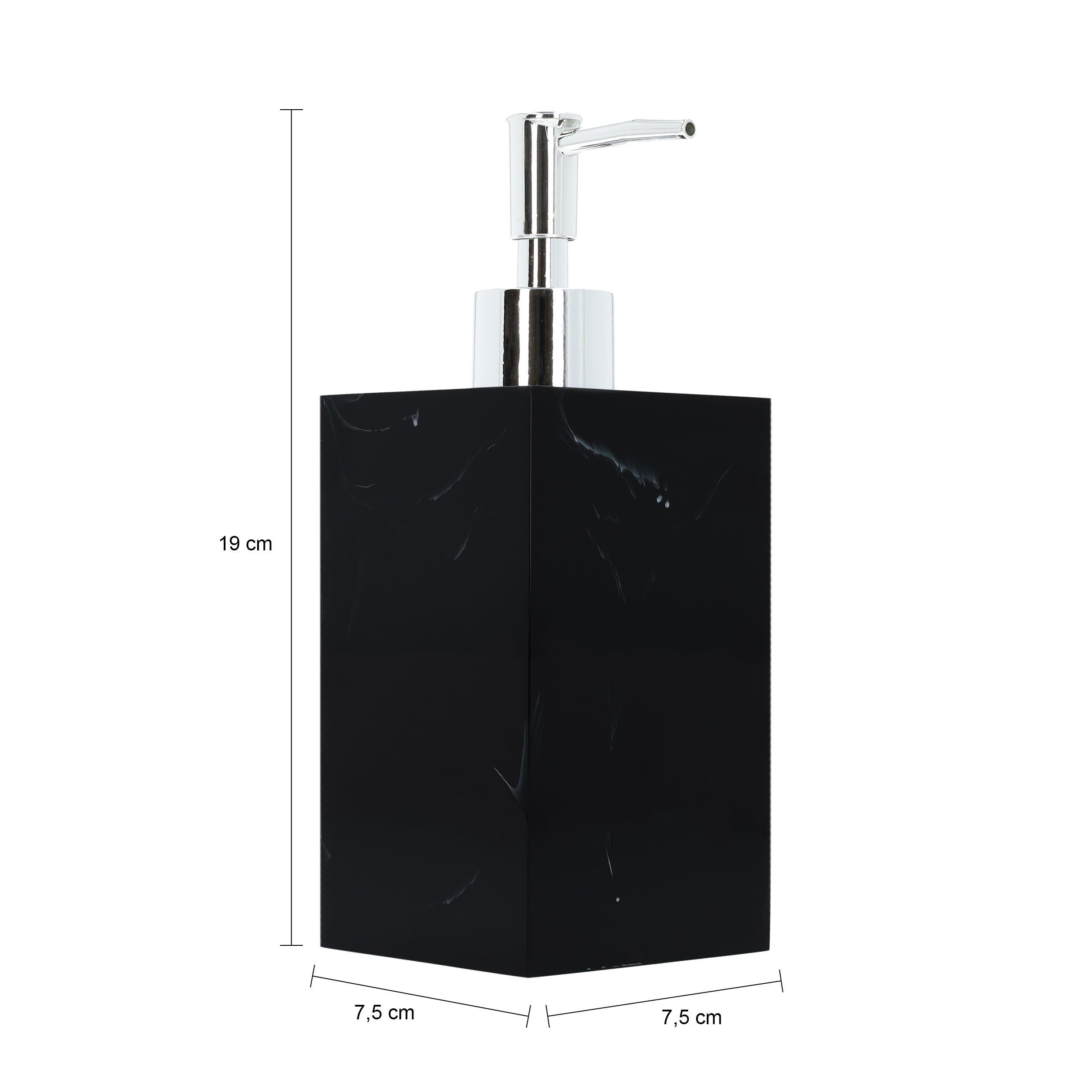 - Deze zwarte zeepdispenser met marmerlook heeft een luxe uitstraling, maar is wel gemaakt van kunststof. Dat biedt veel voordelen.