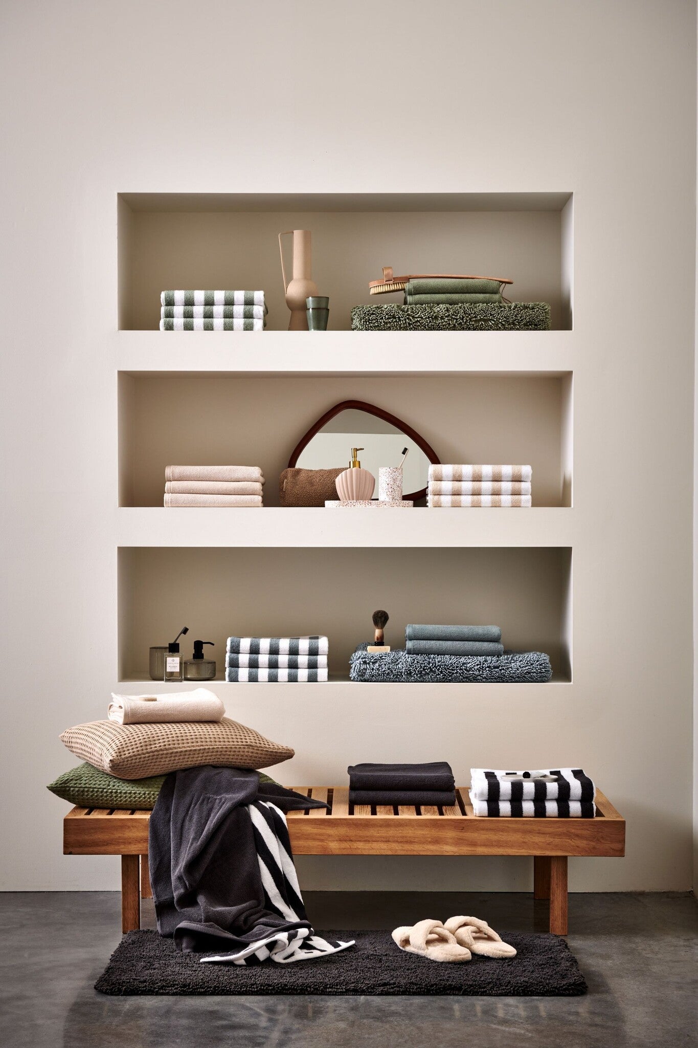 - Stevige, hoogpolige badmatten en toiletmatten in mooie effen kleuren, bijpassend bij het Home en Verona badtextiel.