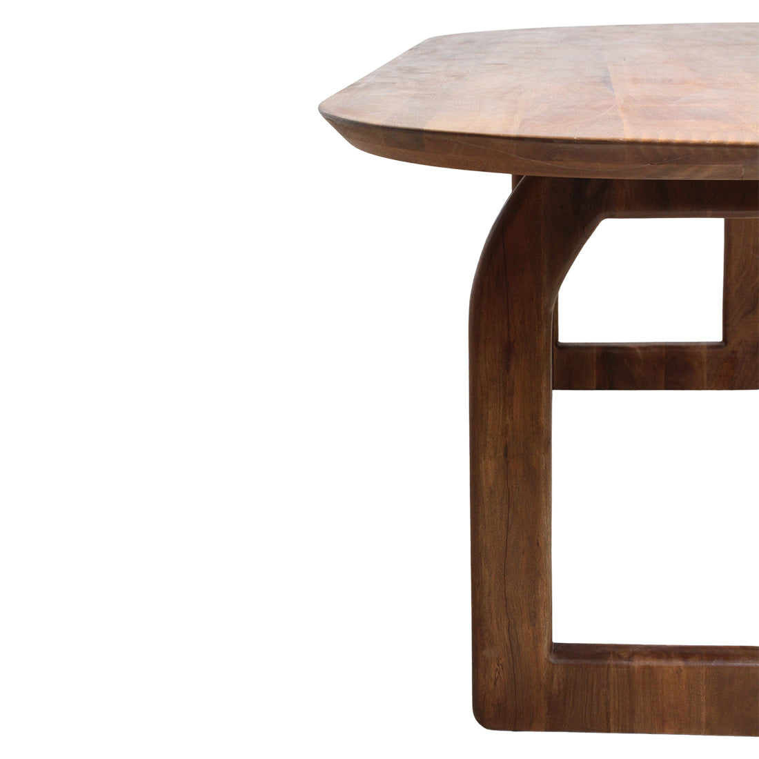 De moderne Bullnose eettafel is gemaakt van mangohout. De organische vorm van de tafel is afgerond, zowel aan de zijkanten als aan de onderkant. Deze eettafel is verkrijgbaar in de kleuren bruin en zwart. Mangohout: Dit product is gemaakt van een speciaal hardhoutsoort: mangohout uit India. Deze houtsoort is erg duurzaam, omdat het een bijproduct is van de voedselindustrie namelijk mangofruit. De bomen groeien op grote schaal in India en rijpen snel: 15 jaar in plaats van bijvoorbeeld eiken (50-100 jaar). De vruchtproductie is goed in de eerste periode van de boom. Naarmate het ouder wordt, neemt ook de fruitproductie af. Daarom is deze boom economisch minder waardevol op de mangoplantages. De oplossing voor mangoboeren is dan: kappen en herplanten. Door deze manier van werken is het hout van de mangoboom echt duurzaam. Na zijn leven als voedselproducent krijgt het hout een tweede leven als meubelstuk. De basis van mangohout heeft een warme kleur, maar door de kleurvariaties in het hout kunnen er afwijkingen zijn. Het geeft elk meubel een robuuste en unieke uitstraling. Het hout heeft enkele zaagsnedemarkeringen die een vintage twist toevoegen. Afwerking: Het mangohout is geschuurd en voorzien van een sealer en wax laag ter bescherming tegen watervlekken. Materiaal: Mangohout (& Metaal) Onderhoud: -Af en toe afnemen met een licht vochtige of droge stofdoek zonder zware stiksels, om krassen te voorkomen. -Vermijd alle schoonmaakgereedschap met een ruw oppervlak. -Vermijd polijst- of reinigingsmiddelen die siliconen bevatten, dit omdat deze na verloop van tijd natuurlijk hout kunnen laten uitdrogen. -Gebruik geen schoonmaakmiddelen of schoonmaakproducten die ammoniak bevatten. -Wrijf wax in het hout voor een mooie glans en een natuurlijke beschermende laag. Dit voorkomt ook dat het hout uitdroogt. -Minerale (hout-)olie kan met een doek worden aangebracht. Dit zal in de loop van de tijd een beschermend oppervlak produceren. De ruimte tussen de poten bedraagt 155 cm.