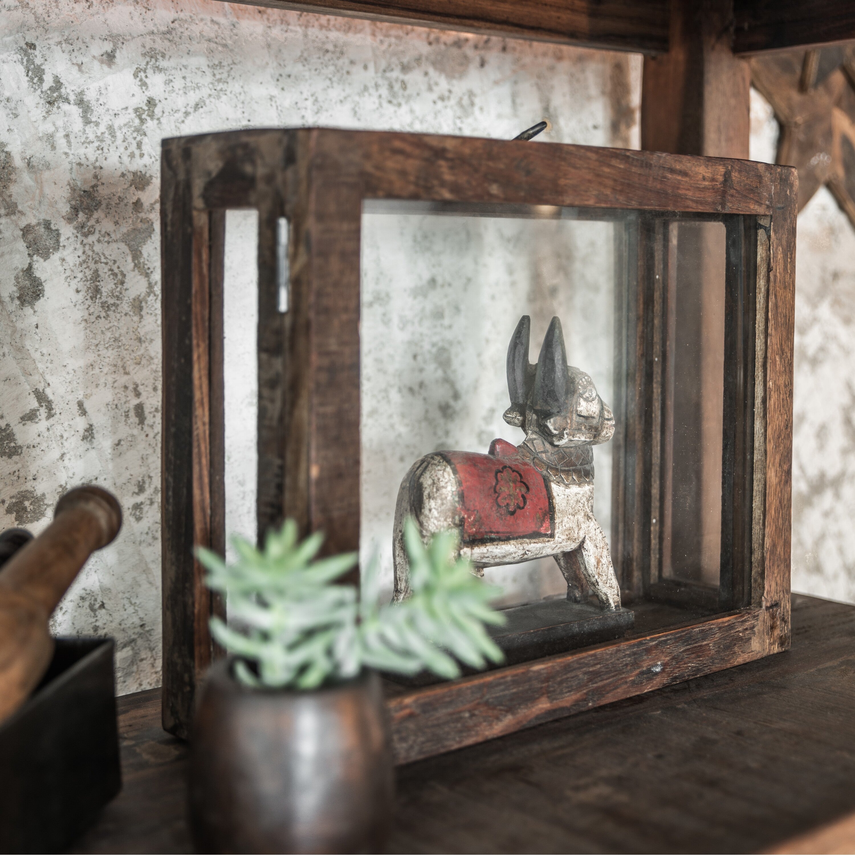 - Deze vitrinekast meet H 30 x B 38 x D 12 cm
