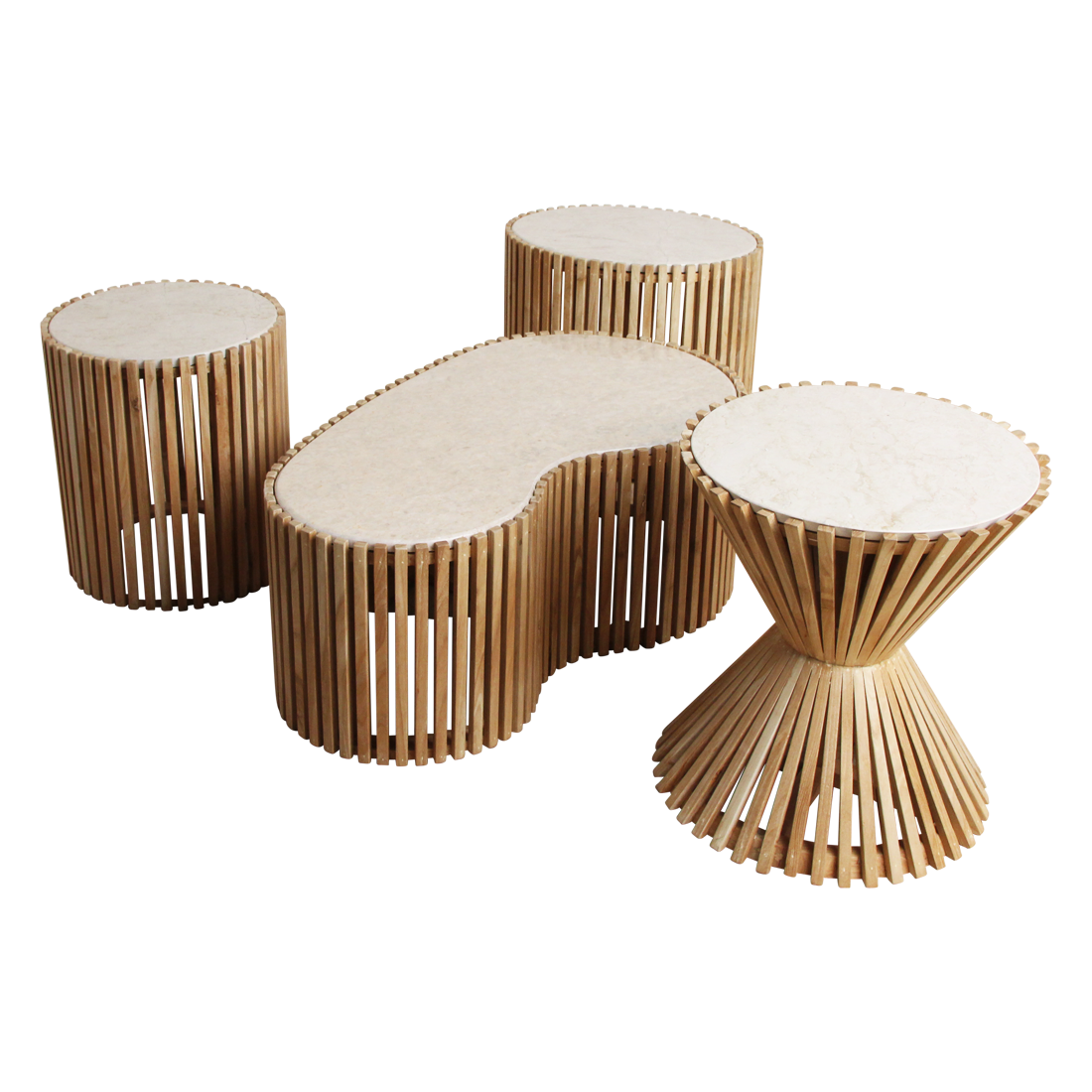 - Luxe marmeren tafelblad gecombineerd met duurzaam Sungkai hout uit Indonesië.