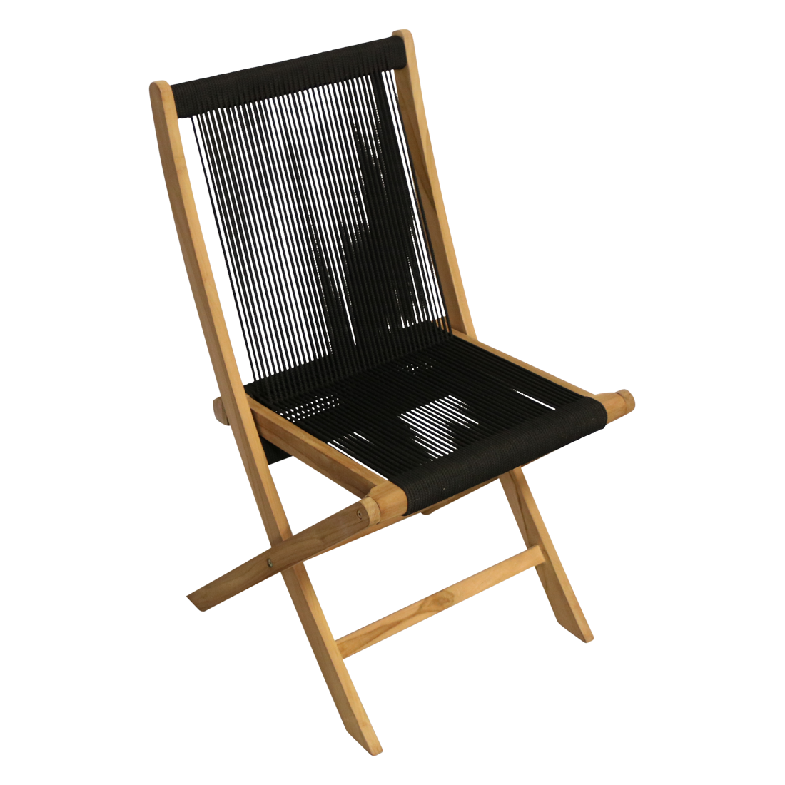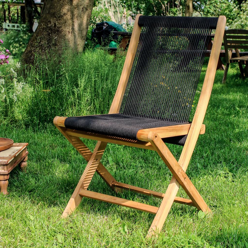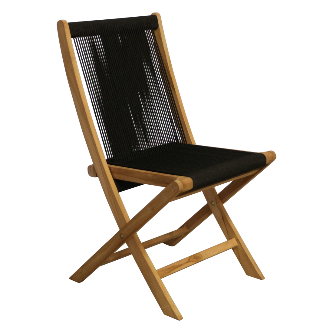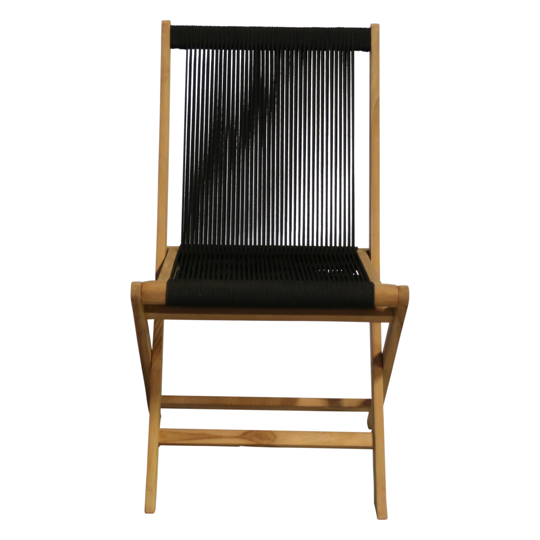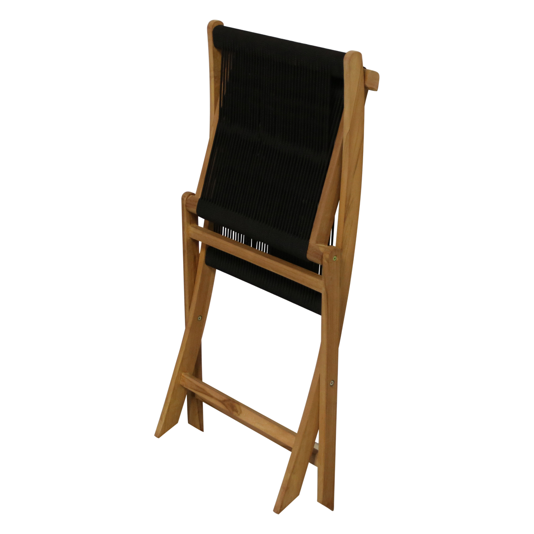 Dit is onze Rope klapstoel. Deze opklapbare stoelen zijn gemaakt met een hoogwaardig teakhouten frame. De zitting en rugleuning zijn met touw bespannen, wat het zitten erg comfortabel maakt. Het touw is van hetzelfde type dat wordt gebruikt bij watersporten. De rekbaarheid van het touw is minimaal, dus ook na langer gebruik wordt het zitcomfort niet aangetast. Door de materialen is de stoel bijzonder geschikt voor buitengebruik. Is het wat minder lekker weer? Dan vouw je ze gemakkelijk op en berg je ze op zonder veel ruimte in te nemen in je schuur. Deze stoel is verkrijgbaar in zwart en naturel gekleurd touw.Rope stoelen:Het hout dat wordt gebruikt voor de stoelen is teakhout. Teak is al eeuwenlang een geliefd hardhout voor meubels, constructie en scheepsbouw, ook omdat het zeer duurzaam is en geschikt voor buiten. Teakhout is inheems in India, Thailand, Laos en Myanmar, maar vanwege uitgebreide houtkap groeit het alleen in Myanmar nog in natuurlijke bossen. In Indonesië werd het in de 16e eeuw geïntroduceerd en tijdens de Nederlandse koloniale tijd ontstonden er grote plantages. Nadat Indonesië onafhankelijk werd, heeft de Indonesische regering de plantages beheerd. Dit is redelijk succesvol geweest, aangezien teak een waardevol hout is en het altijd economisch is geweest om teak opnieuw te planten na het kappen van bomen.Vrijwel al het teakhout dat in Indonesië wordt gebruikt voor de meubelproductie komt van deze plantages. Alleen voor lokaal gebruik wordt soms teak van kleine boerderijen in de buurt van dorpen gebruikt. Omdat het niet in de natuurlijke bossen van Indonesië groeit, worden er geen tropische bossen gekapt voor teakhout.Sinds 2016 reguleert de Indonesische regering alle houthandel, met een systeem om al het hout dat wordt geëxporteerd te traceren naar de bron, waar de bomen zijn gekapt. Dit maakt deel uit van een FLEGT-handelsovereenkomst met de EU, om te garanderen dat alleen legaal hout in de EU wordt ingevoerd.Deze aspecten samen maken de productie van teak in Indonesië en het gebruik ervan voor meubels zowel economisch als ecologisch duurzaam.Materialen:Teakhout, nylon touw.Onderhoud:Er is geen speciaal onderhoud vereist. Teakhout wordt na verloop van tijd grijzer. Om een diepere kleur te krijgen is behandeling met teakolie mogelijk, maar het is niet per sé noodzakelijk.Zoals elk synthetisch materiaal kan het touw licht vervagen na langdurige blootstelling aan de zon. Maar omdat er touw met een hoge UV-bestendigheid wordt gebruikt, zal het proces erg traag en nauwelijks merkbaar zijn. Wat er ook zal vervagen, het wordt gelijkmatig verdeeld over de zichtbare delen van de stoel, zonder het uiterlijk van de stoel te verminderen.