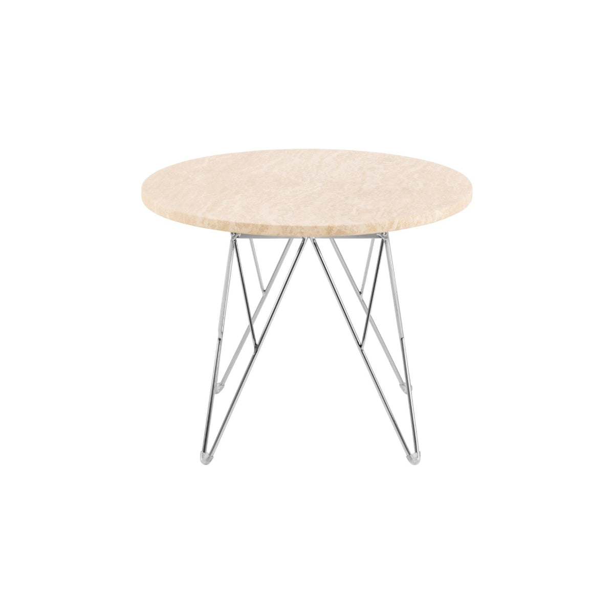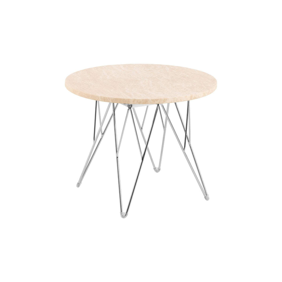 Rebellenclub Broome Salontafel - ø55 - Travertin Look Met Chrome Poten