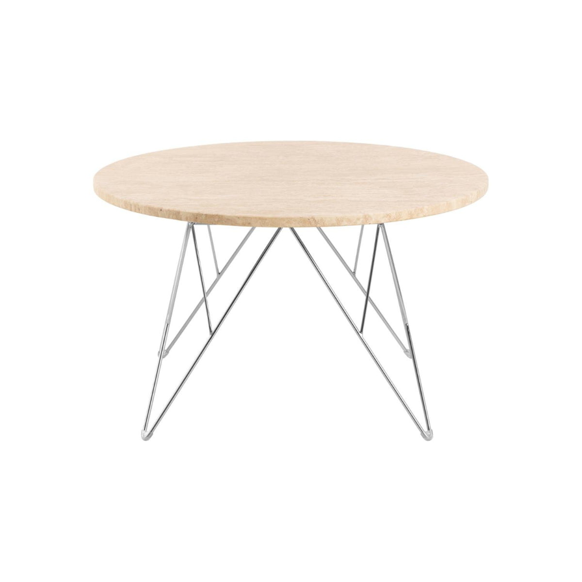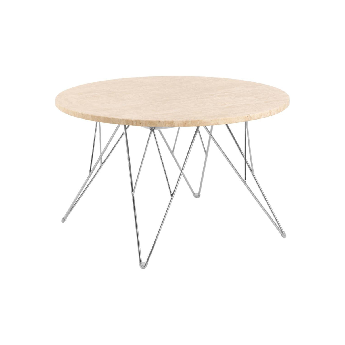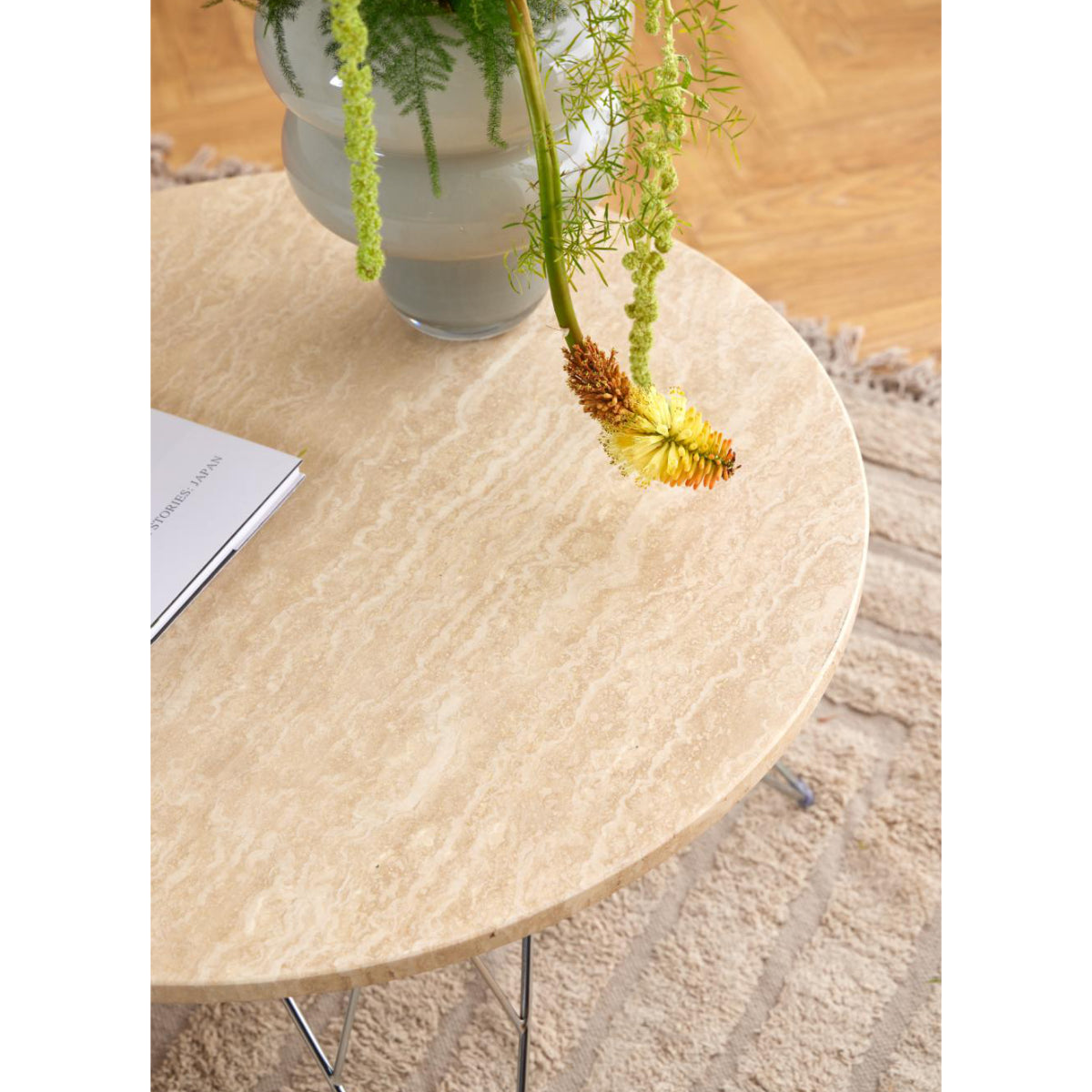 Rebellenclub Broome Salontafel - ø80 - Travertin Look Met Chrome Poten
