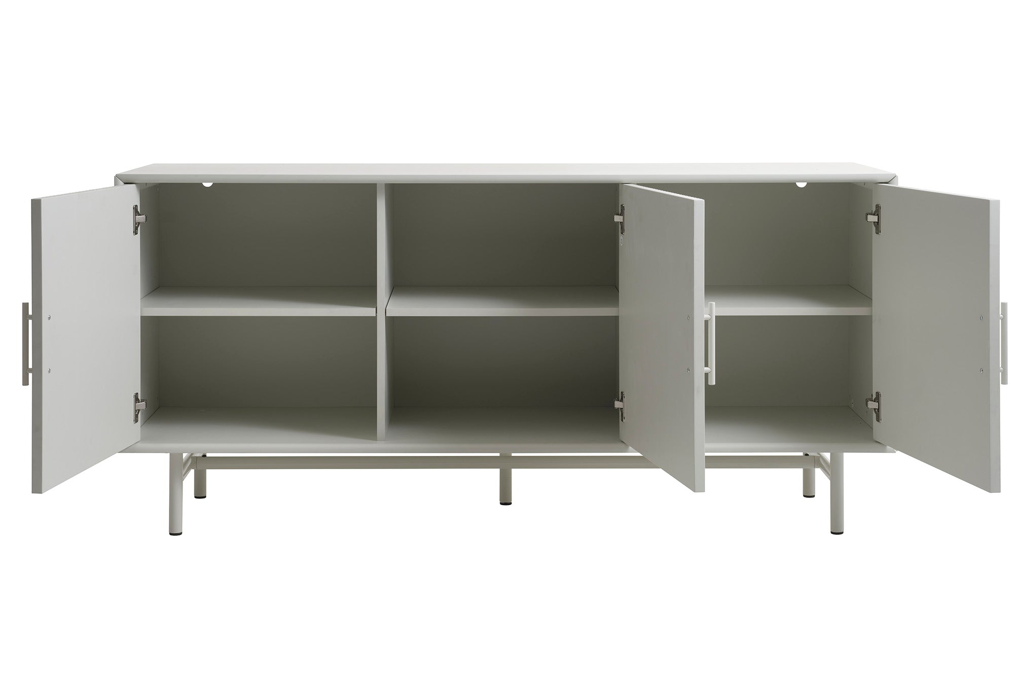 Met zijn slanke metalen poten en handvaten straalt dit dressoir een ingetogen elegantie uit. Of je nu je servies, boeken of andere woonaccessoires wilt opbergen, het Brota dressoir biedt de perfecte combinatie van functionaliteit en stijl voor elke ruimte in huis.