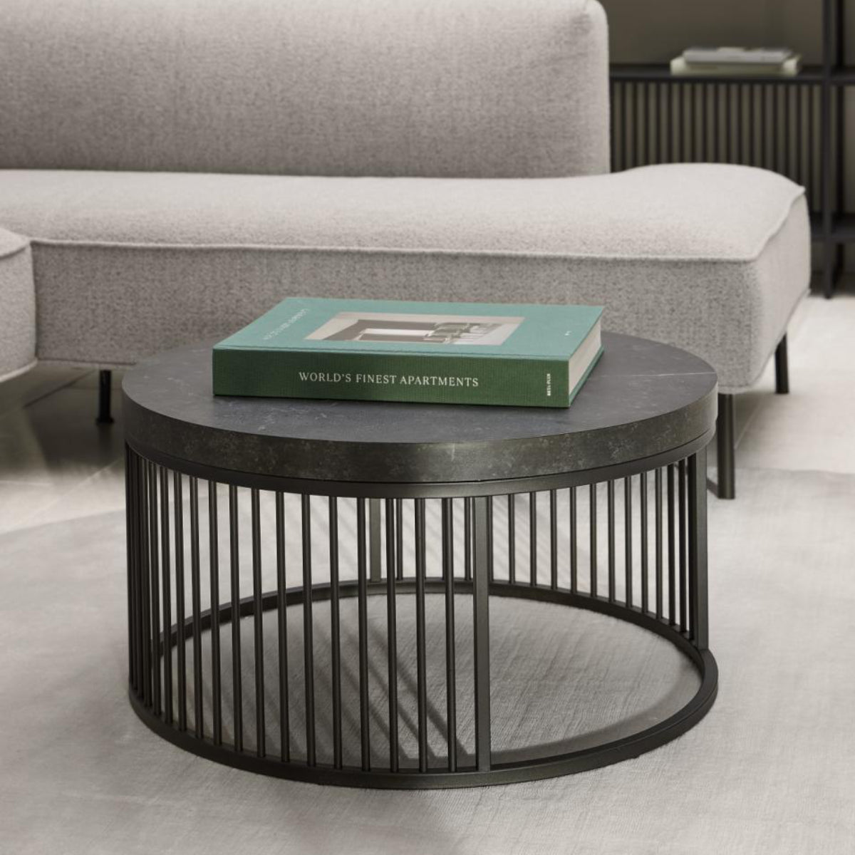 Wie had gedacht dat een salontafel zo cool kon zijn? Dit ontwerp maakt moeiteloos een statement in elk modern huis. Het zwarte metalen frame is voorzien van metalen spijlen, terwijl het tafelblad je charmeert met zijn zwarte marmeren uitstraling.