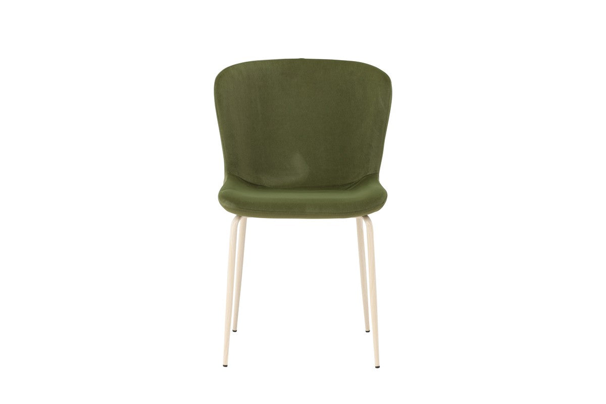 Een tikkeltje retro, een vleugje chic, de Drammen eetkamerstoel in groen velours tilt jouw eethoek naar een hoger niveau. De fluweelzachte stof en subtiele glans geven deze stoel een elegante uitstraling, zonder dat hij zijn toegankelijke karakter verliest.