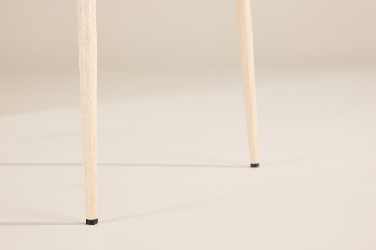 De afgeronde rug en zitting zorgen voor een comfortabele zit, perfect voor lange diners en gezellige spelletjesavonden. De crème-witte stalen poten vormen een verrassend contrast en geven de stoel een lichte, moderne look.