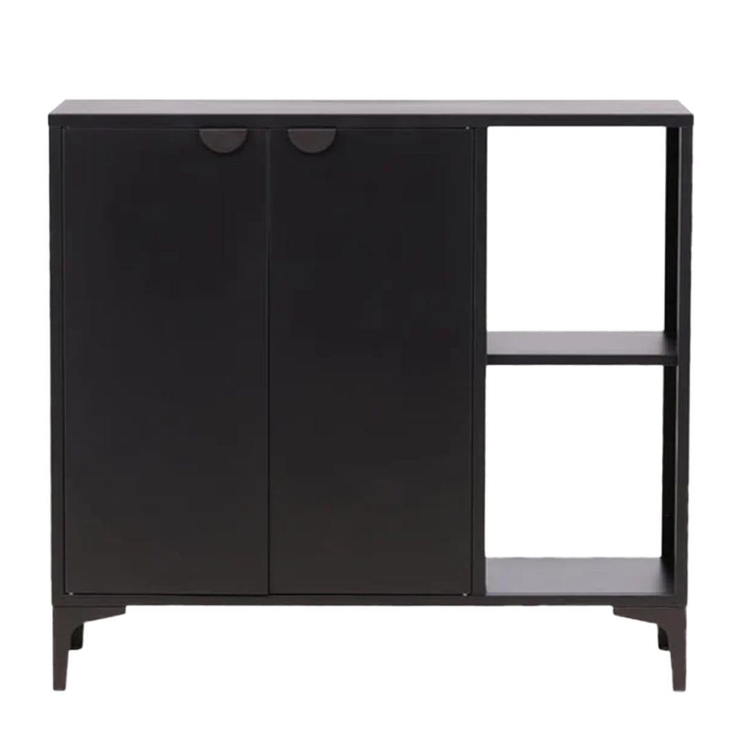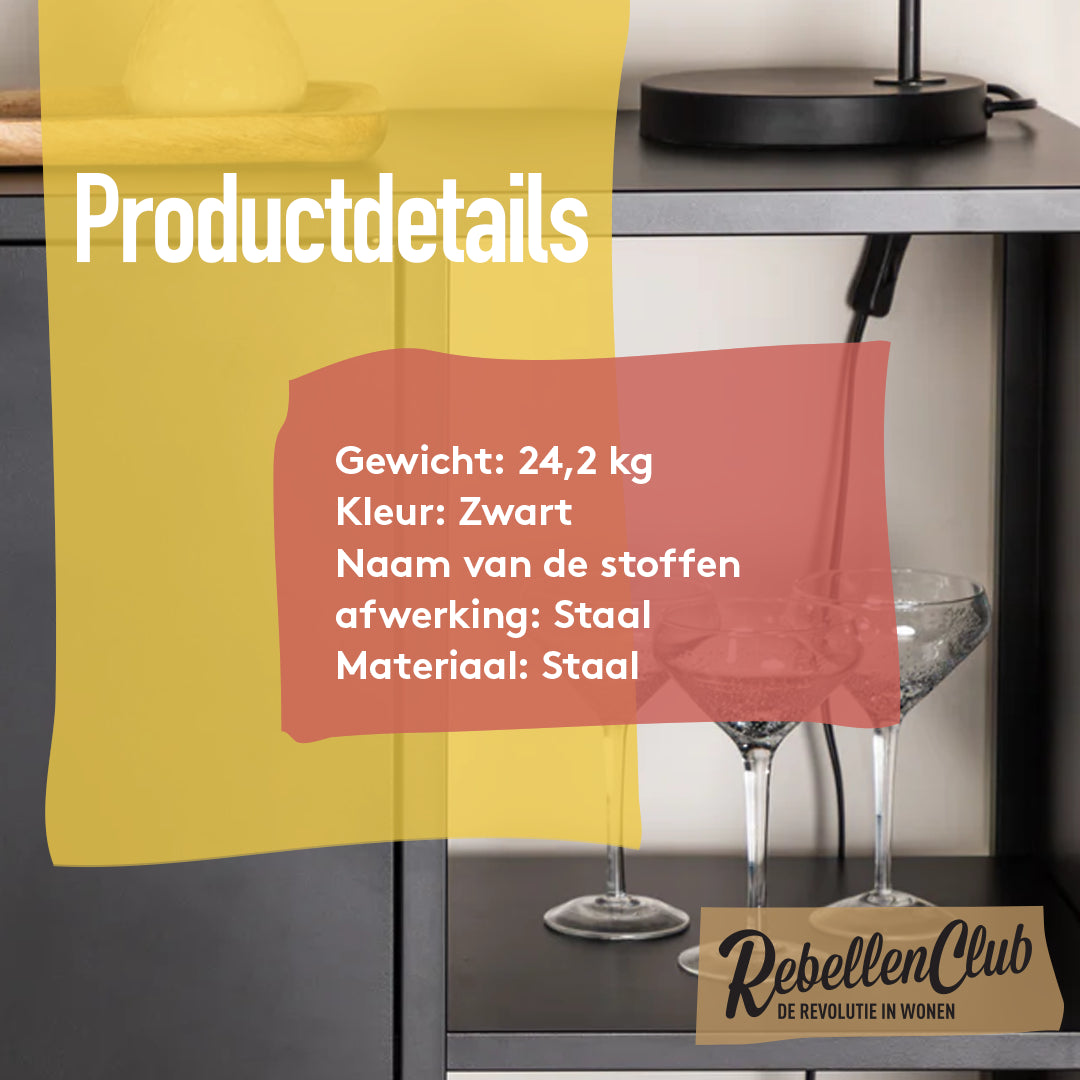 Het dressoir Forde is een stijlvol meubelstuk met een combinatie van opbergruimte en open vakken. De opbergruimte biedt voldoende plaats voor het opbergen van diverse items, zoals servies, boeken of andere leuke items. Je kan de dressoir kast Forde ook leuk neerzetten in de keuken, dan kan je er een bar van maken. Forde is een handige dressoir en biedt veel mogelijkheden. Dressoir Forde geeft een moderne uitstraling in je huis. Het materiaal is gemaakt van zwart staal.