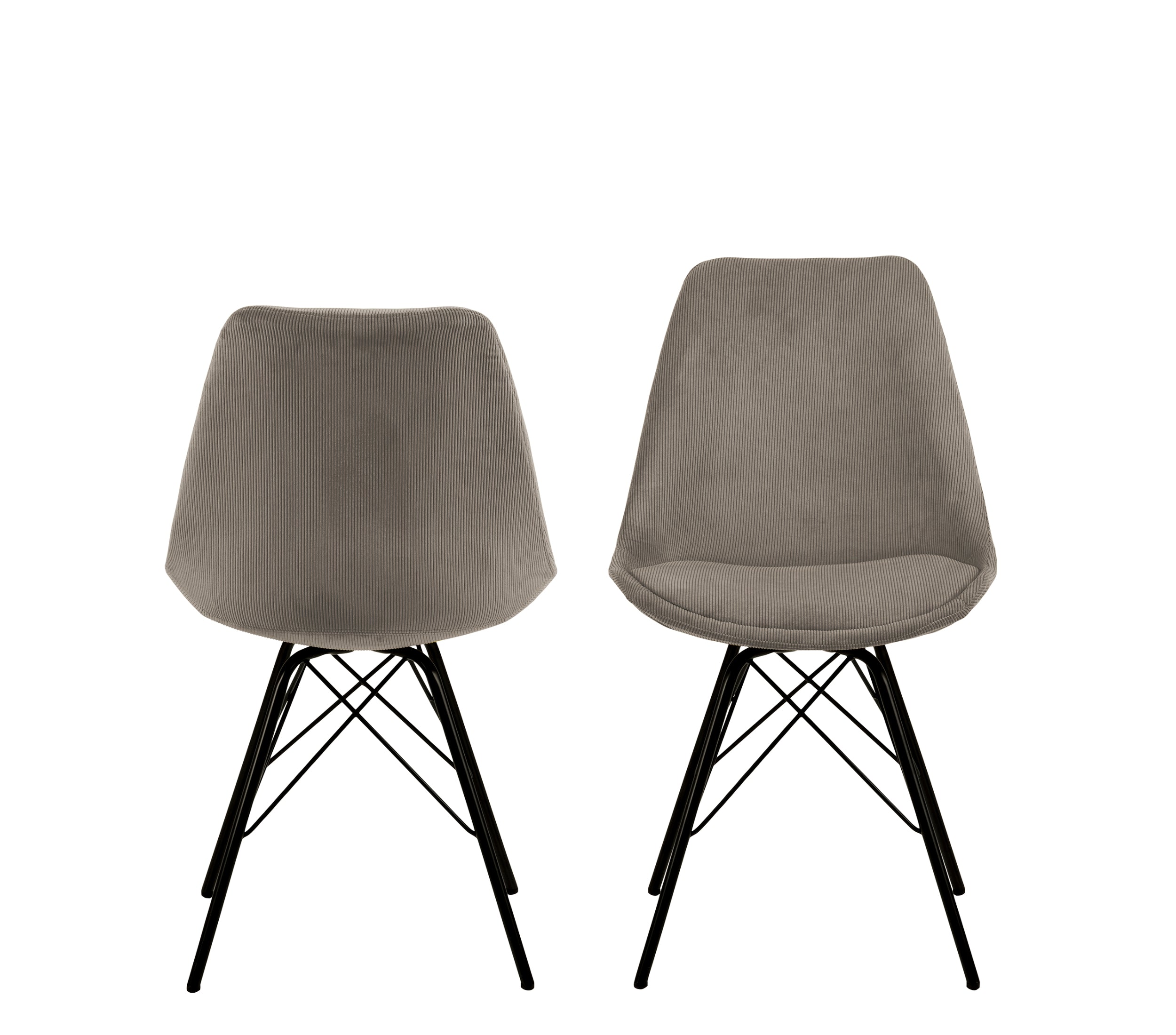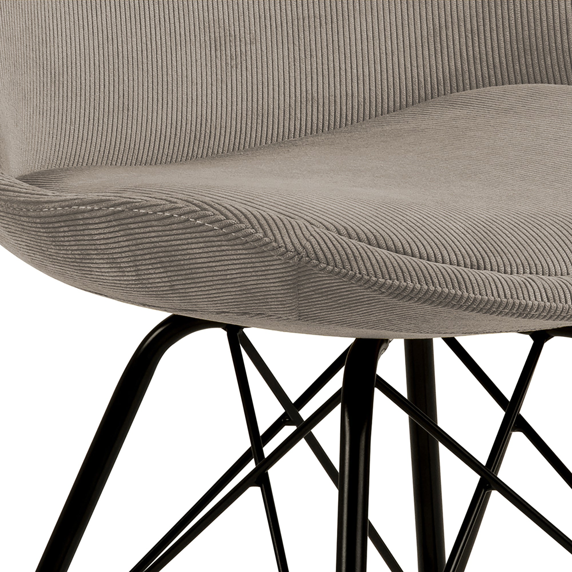 Het metalen frame is afgewerkt met een zwarte poedercoating. Aan de onderzijde van de poten zitten kunststof voetjes die het risico op krassen minimaliseren. Je combineert de stoeltjes ook leuk onderling. In de huidige trend zien we veel kleuren ribstof, je combineert de fijne kleurtjes mooi met hout, metaal, beton en geborsteld messing.