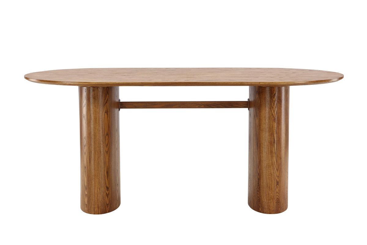 Deze ovale eettafel in een mooie donker eiken houtkleur heeft een eigentijds ontwerp en een stevige frame dat een solide indruk maakt. Het levendigheid van het hout voegt een smaakvolle dynamiek toe aan het geheel.