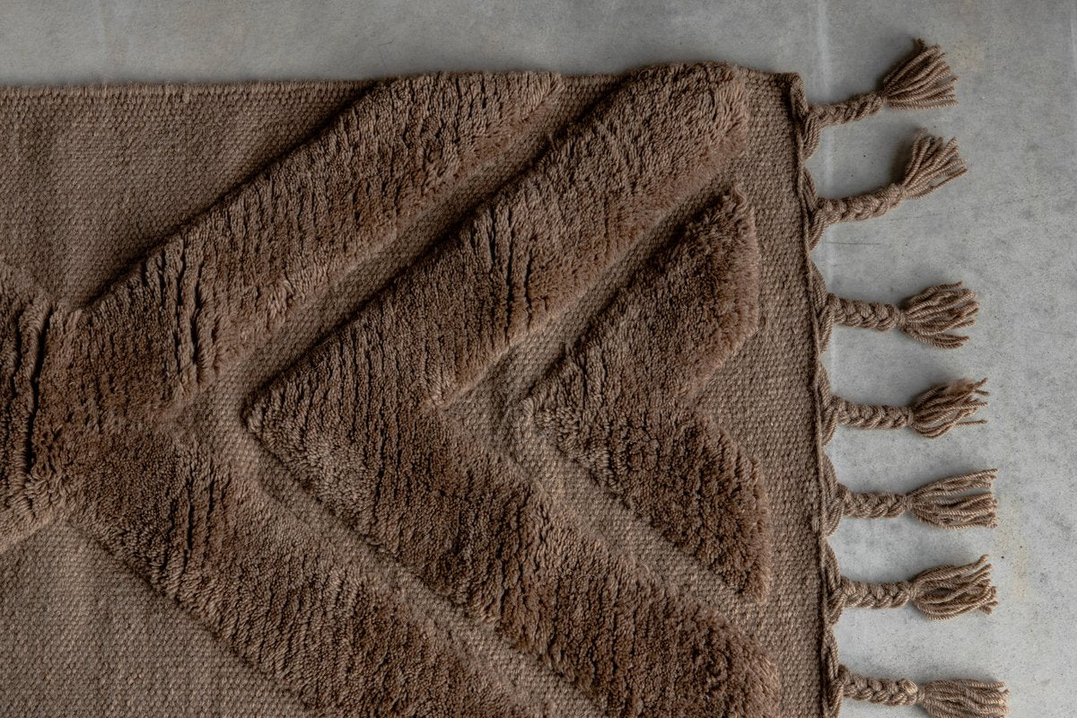 Geef je interieur een stijlvolle upgrade met het Fino Vloerkleed! Dit bruine wollen kleed heeft een lage, dichte pool met een subtiel structuurpatroon, waardoor het een elegante diepte krijgt en je ruimte een verfijnde uitstraling geeft.