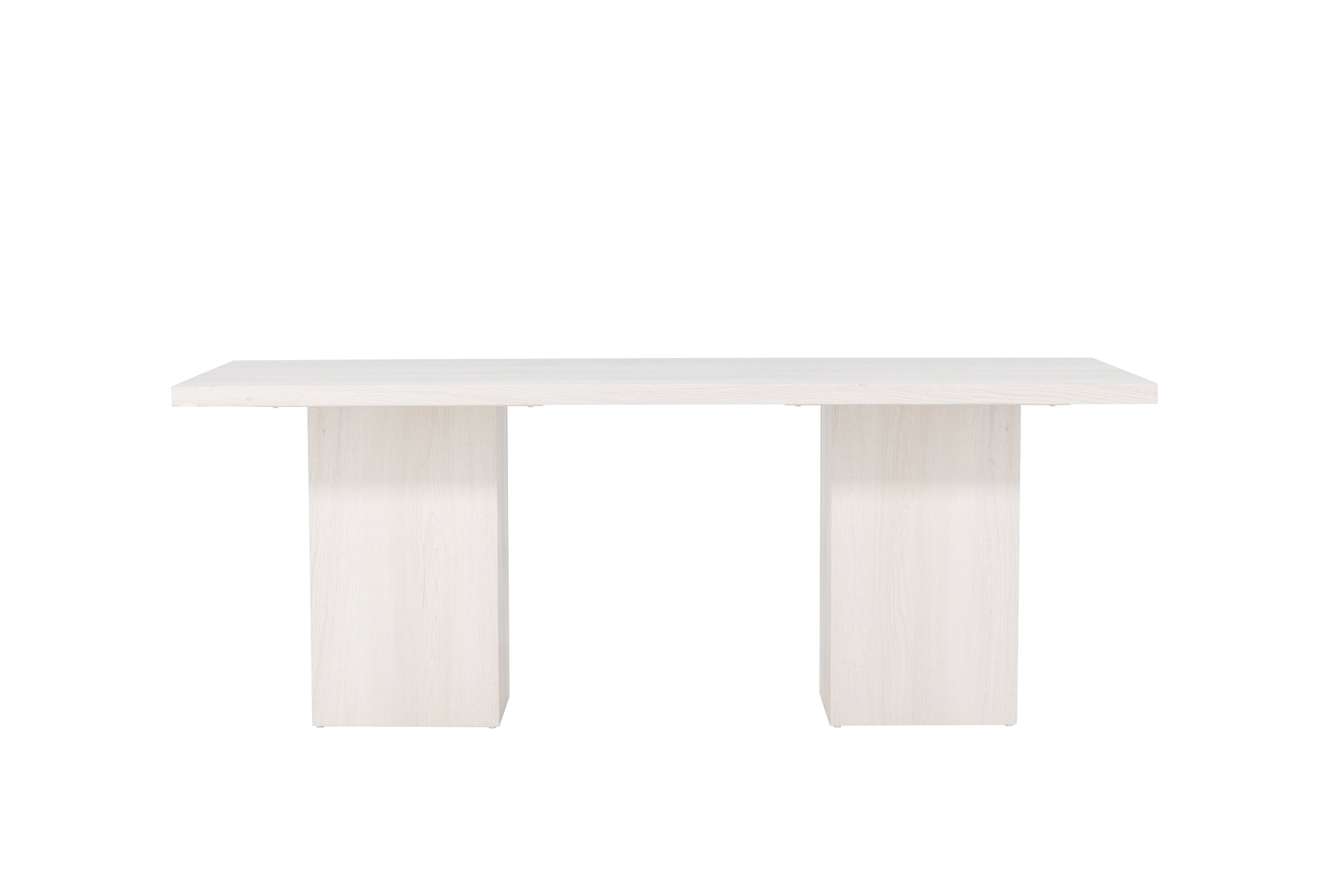De eettafel uit de Fredrikshamn-serie zal snel de trendlijsten beklimmen dankzij zijn witte gipsafwerking en stijlvolle, Scandinavische ontwerp! Deze rechthoekige eettafel heeft een tafelblad van wit gepleisterd MDF met twee stevige tafelpoten van hetzelfde materiaal. Richt het hart van je huis uitnodigend en in stijlvolle kleuren in. Combineer het met een paar slanke eetstoelen en je hebt een complete voedselgroep voor alle feestelijke gelegenheden! Tafelafmetingen: 200x90 cm.