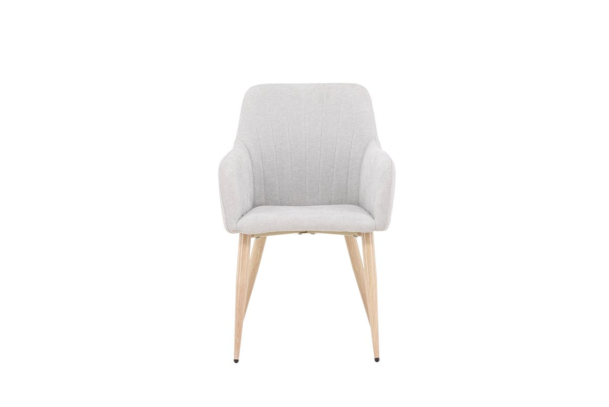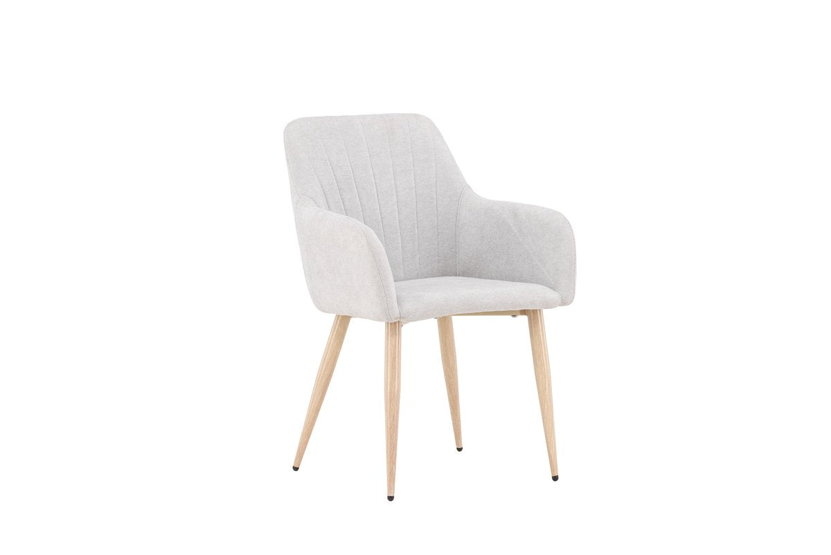 Ontdek de stijlvol simpele charme van eetkamerstoel Hestra. Met zijn lichtgrijze kleur en houten poten geeft deze stoel je eetkamer een frisse, moderne uitstraling.