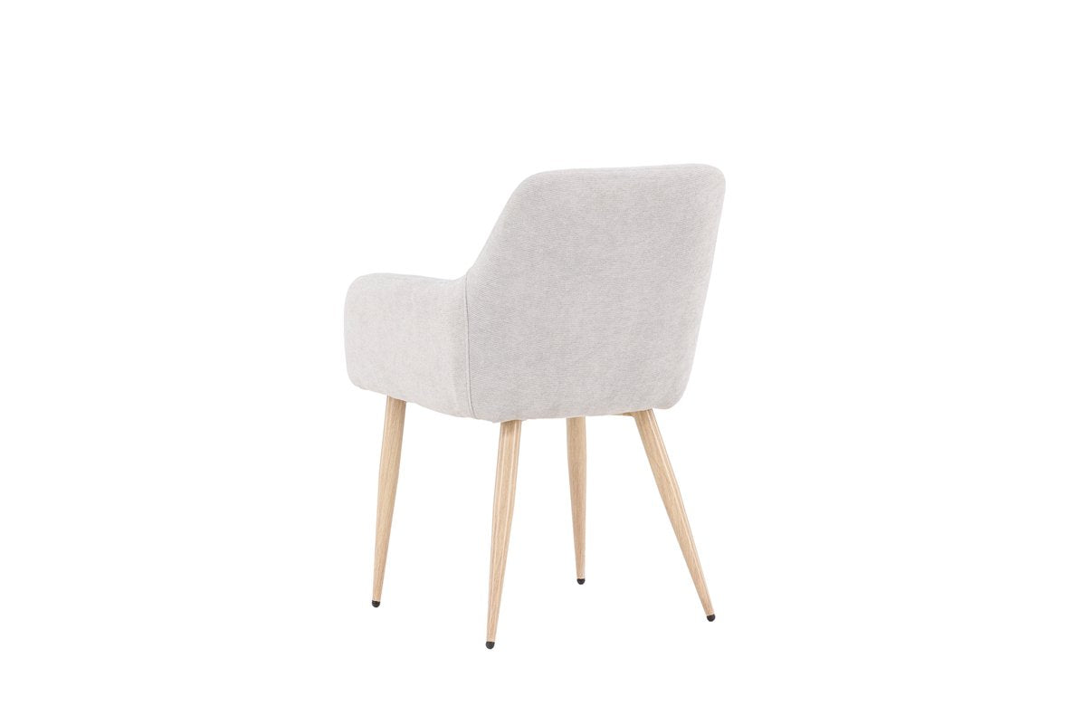 De stoel is bekleed met polyester linnen voor een comfy zitervaring, en de stalen poten zorgen ervoor dat je er jarenlang van kunt genieten. Of je nu met familie aan tafel schuift of gezellig met vrienden dinert, deze stoel is perfect voor elke gelegenheid.