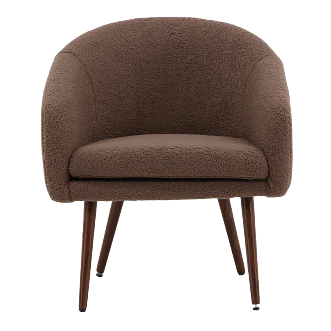 Design jouw huis met de moderne blikvanger Inga en voorzie het van een fauteuil die stijl en comfort combineert! Inga is een droomfauteuil, helemaal in lijn met de laatste trends. Gemaakt van knus nepwol in een warme bruine kleur, wat een gezellig en knus gevoel aan de kamer geeft. De slanke poten hebben een elegante flair en zijn gemaakt van walnootkleurig staal.