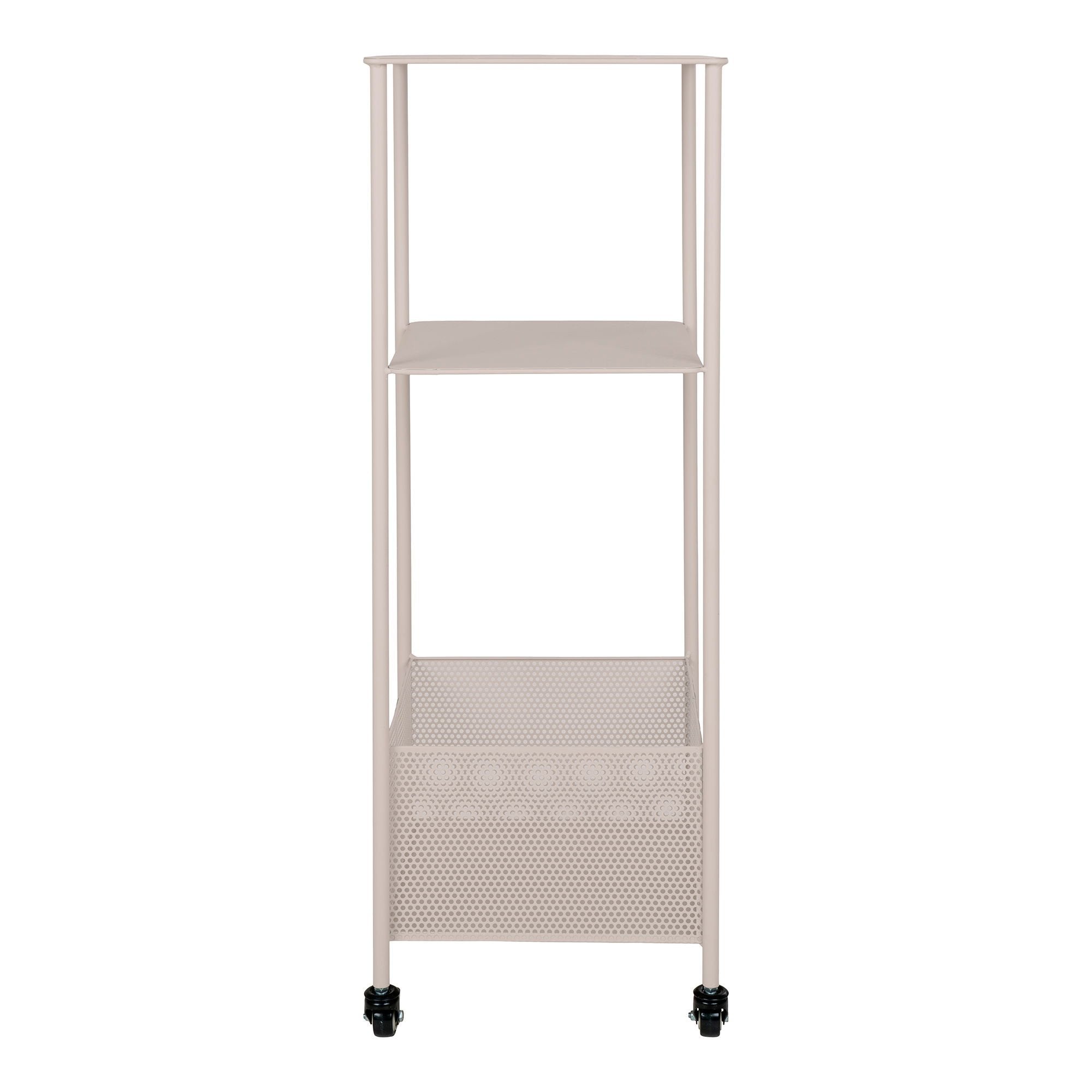 Wat de Jurmo trolley echt bijzonder maakt, is zijn beige stalen frame en de drie stevige planken. Deze combinatie zorgt voor een moderne en verfijnde uitstraling, terwijl de wieltjes ervoor zorgen dat de trolley gemakkelijk te verplaatsen is. Dit maakt het een veelzijdig meubelstuk dat je kunt gebruiken in de keuken, woonkamer, of kantoor.