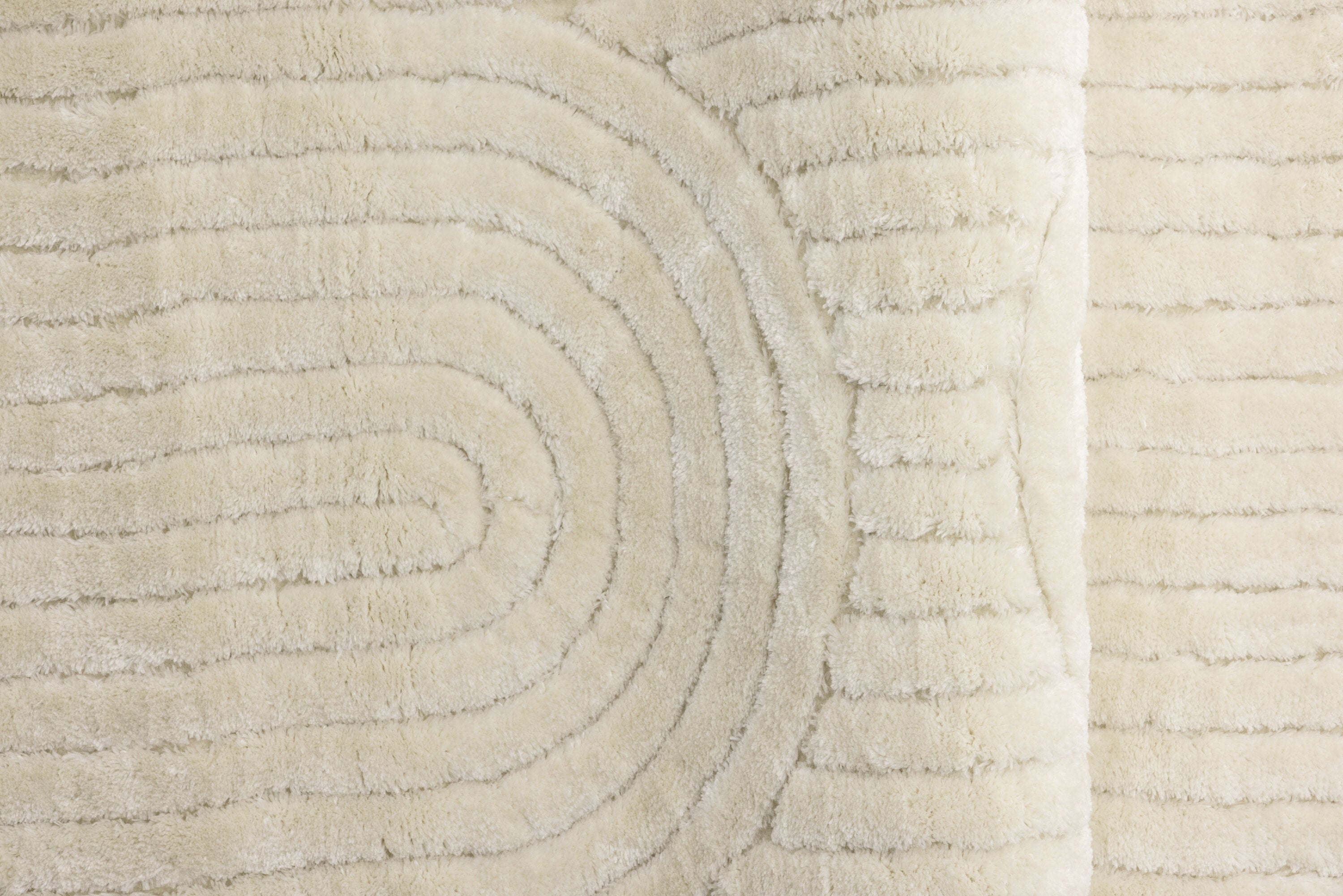 - De witte kleur van het tapijt voegt direct een gevoel van stijl vermengd met eenvoud toe en verlicht de kamer.