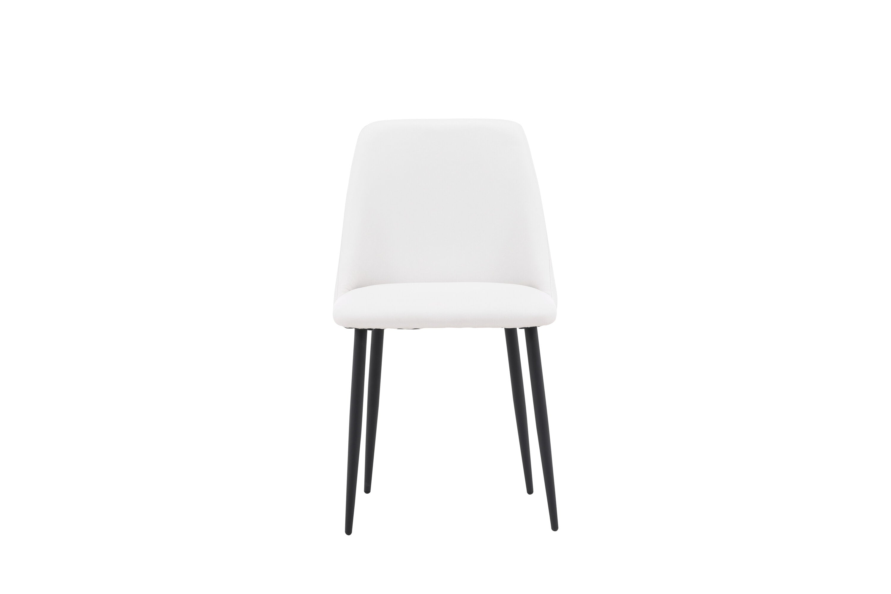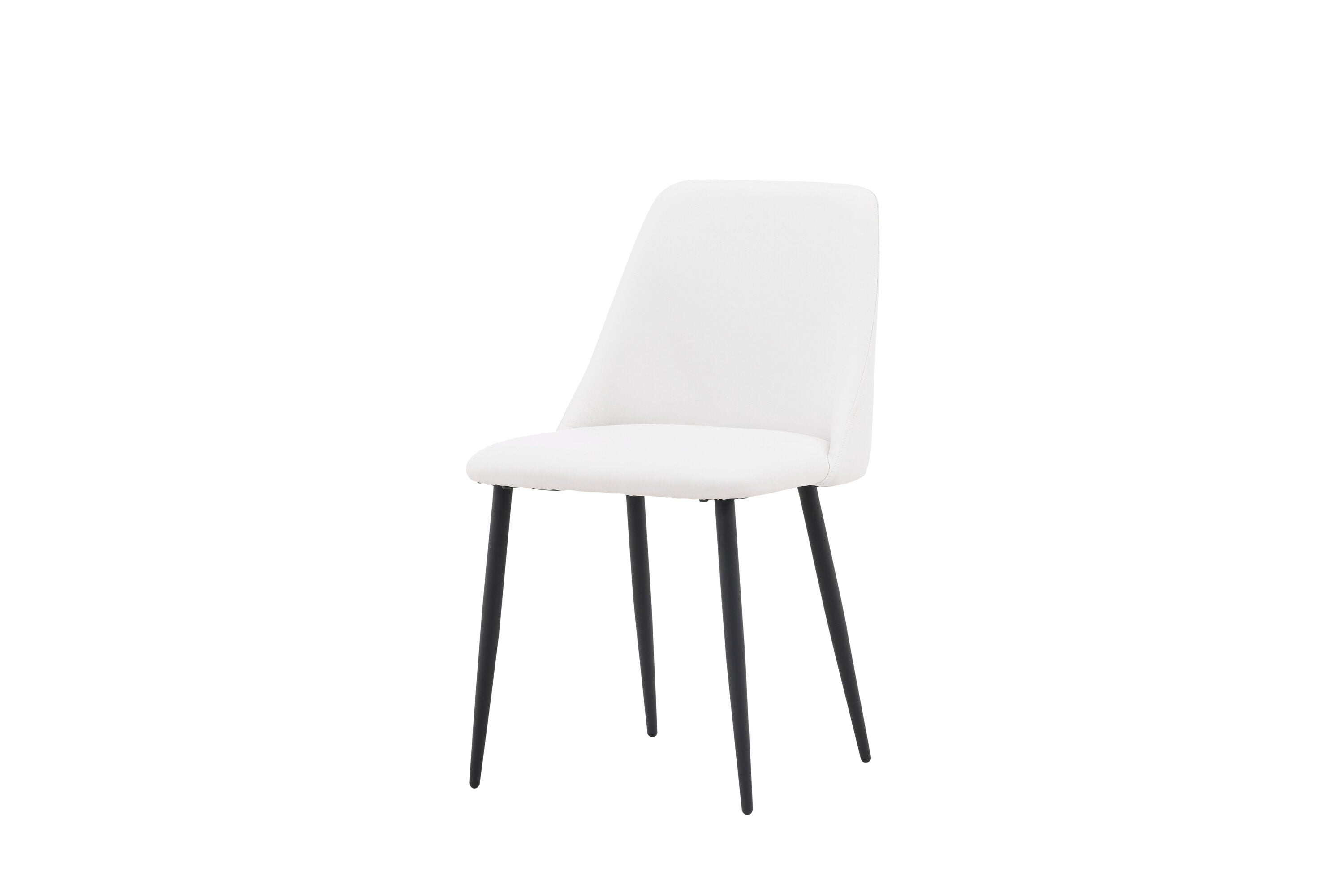 Een eetstoel die de ogen trekt en indruk maakt met zijn Scandinavisch ontwerp! Deze stoel uit de Kangasala-serie heeft een volledig beklede zitting in witte PU-stof die net zo luxe als elegant aanvoelt, en de stoelpoten zijn van zwart staal. De zitting is ook extra comfortabel gestoffeerd. Zit comfortabel en geniet van heerlijke maaltijden in het vooruitzicht!
