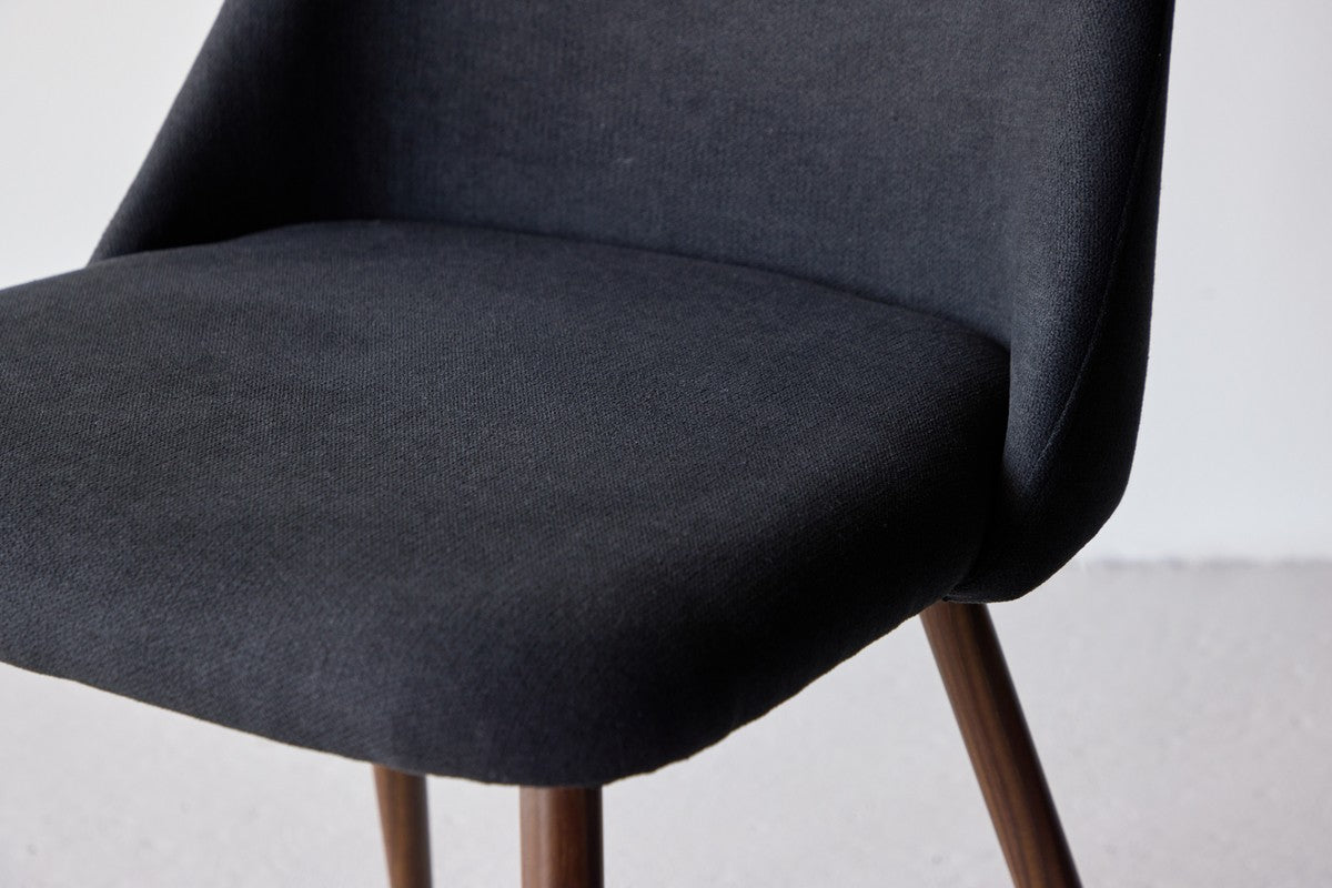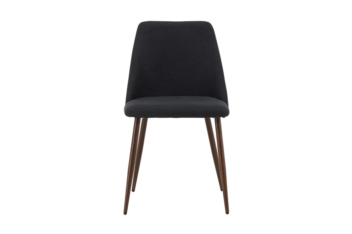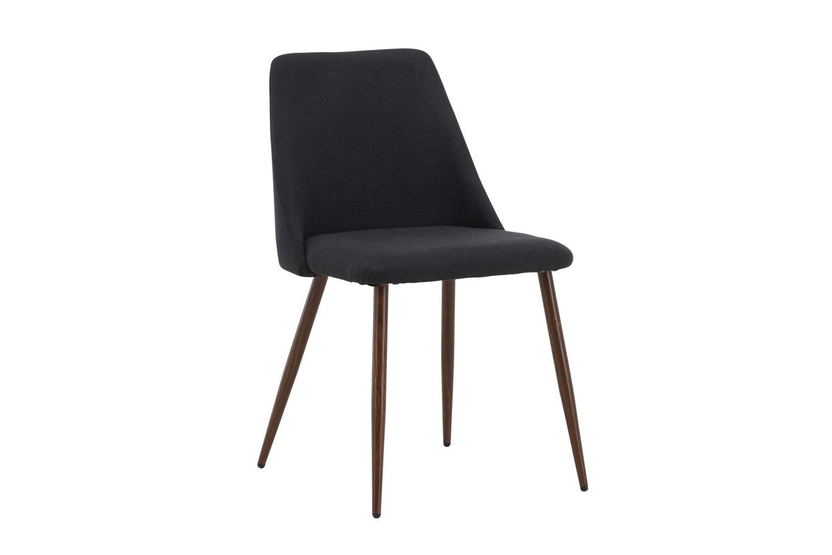 Stijlvol, rank en verrassend comfortabel, de Kangasala eetkamerstoel is een subtiele blikvanger aan tafel. De elegante taps toelopende poten van gepoedercoat staal geven de stoel een verfijnde moderne-twist, terwijl de bekleding in zwart polyester-linnen zorgt voor een rustige, maar krachtige uitstraling.