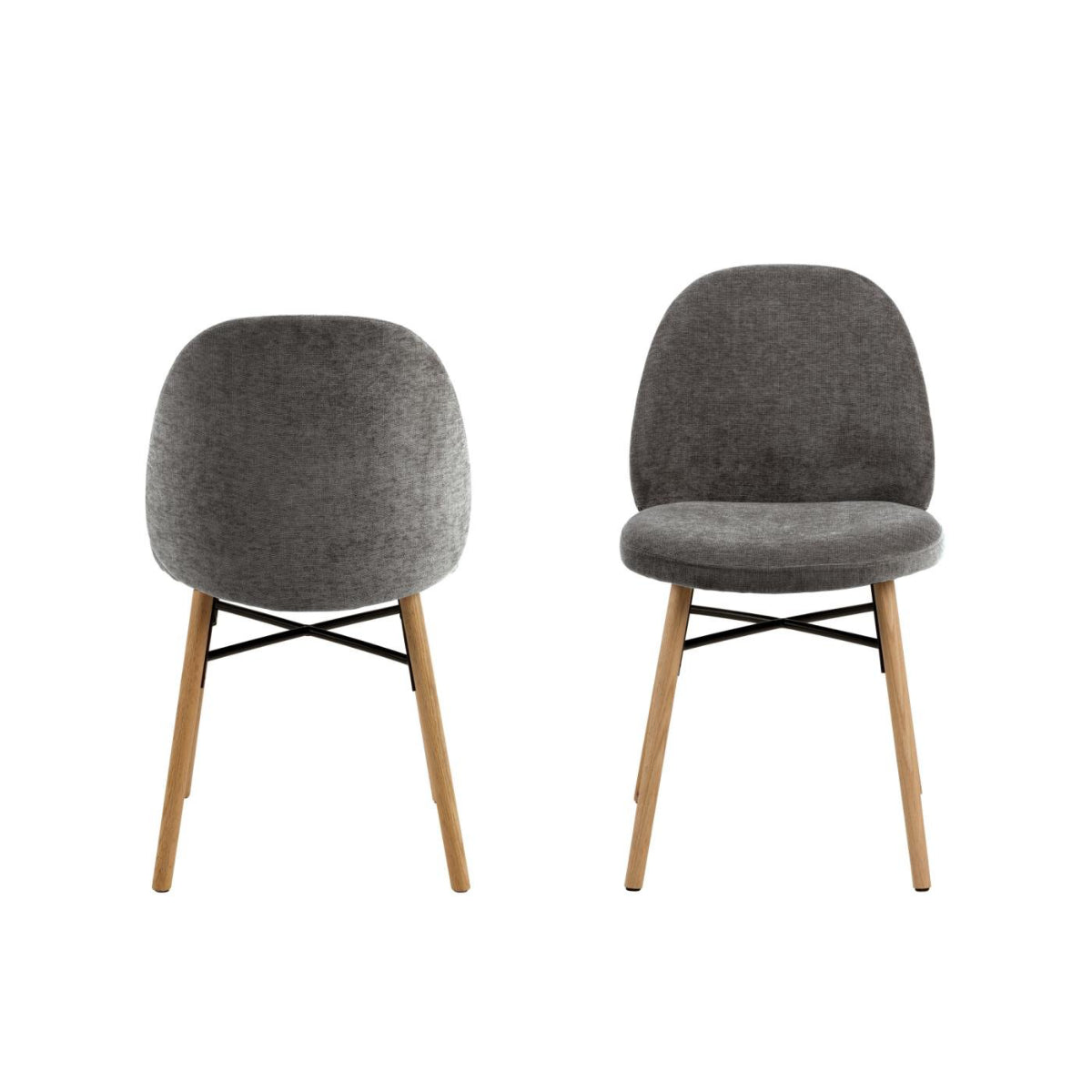 Breng elegantie en comfort samen in je eetruimte met de Lolo eetkamerstoel. Deze stoel heeft een subtiele, afgeronde rugleuning die niet alleen voor een verfijnde uitstraling zorgt, maar ook zorgt voor het ultieme zitcomfort. Het zachte donker grijze stoffering met chenille-effect geeft de stoel een luxe uitstraling die perfect past in elk interieur.