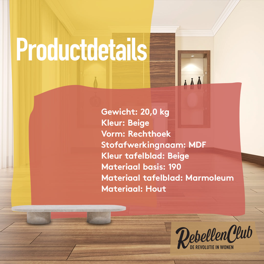 Rebellenclub Mahigan Salontafel - 190 x 60 cm - Beige