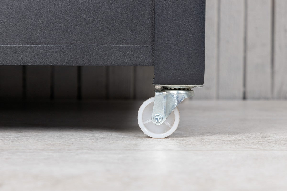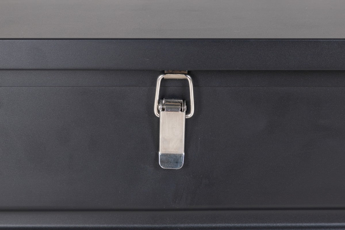 Onderhoud:De opbergbox is gemaakt van duurzaam materiaal, maar om de levensduur te verlengen, raden we aan deze regelmatig schoon te maken met water en milde zeep. Spoel altijd grondig na, vooral in gebieden dicht bij de kust, waar zout in de lucht kan leiden tot corrosie. Vermijd het gebruik van een hogedrukreiniger om beschadiging van de afwerking te voorkomen.