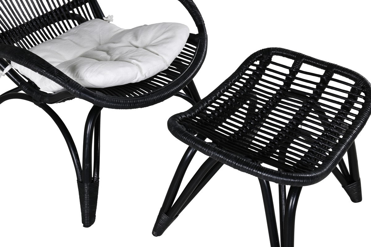 De Merit Loungestoel in stijlvol zwart combineert luxe design met ultiem comfort. Het gevlochten touw geeft een speelse, luchtige uitstraling en maakt de stoel perfect voor een ontspannen sfeer in je tuin of op je balkon.