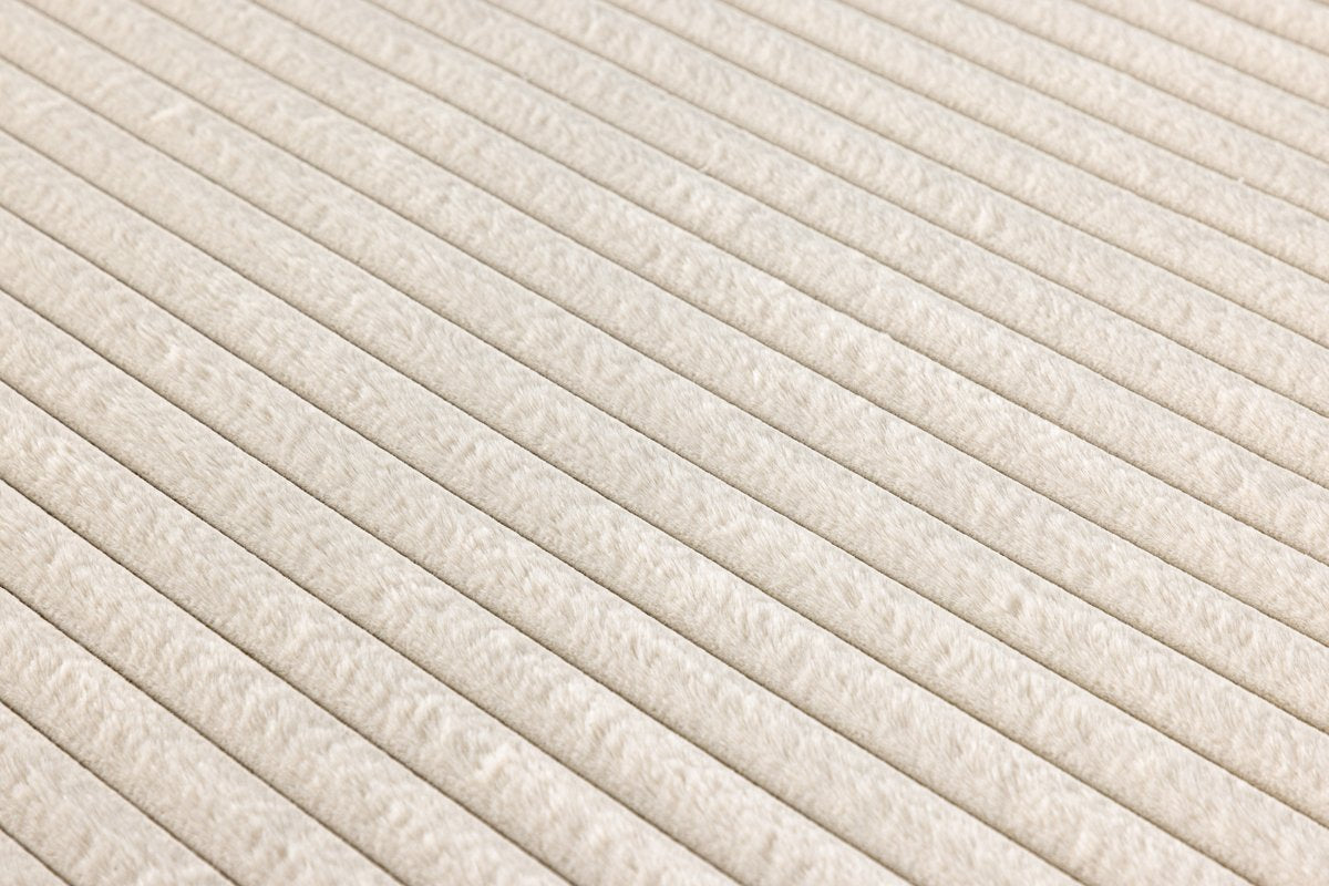 Het vloerkleed Mija van 290 x 200 cm in de kleur beige combineert trendy moderniteit met een ontspannen en aardse sfeer. Uniek aan dit vloerkleed zijn de strakke, slanke banen die een verfijnd patroon vormen en subtiele elegantie toevoegen aan je interieur.