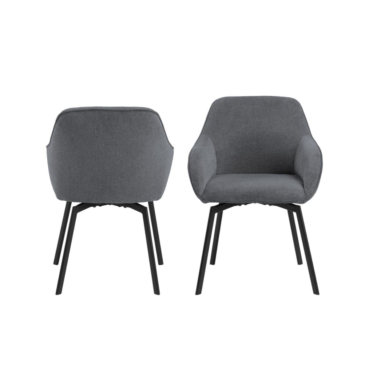 Klaar om je eetruimte een dosis flair te geven? De Morrey eetkamerstoel met armleuning is niet alleen een stoel, maar een uitnodiging om je te nestelen in comfort. Gemaakt van een luxueuze antraciet stof die lijkt op chenille, omarmt deze stoel je op een manier die zegt: "Ga zitten, blijf even hangen." Met een slanke, zwarte draaivoet die een auto-retourfunctie heeft, voegt deze stoel een moderne twist toe aan je tafelsetting.
