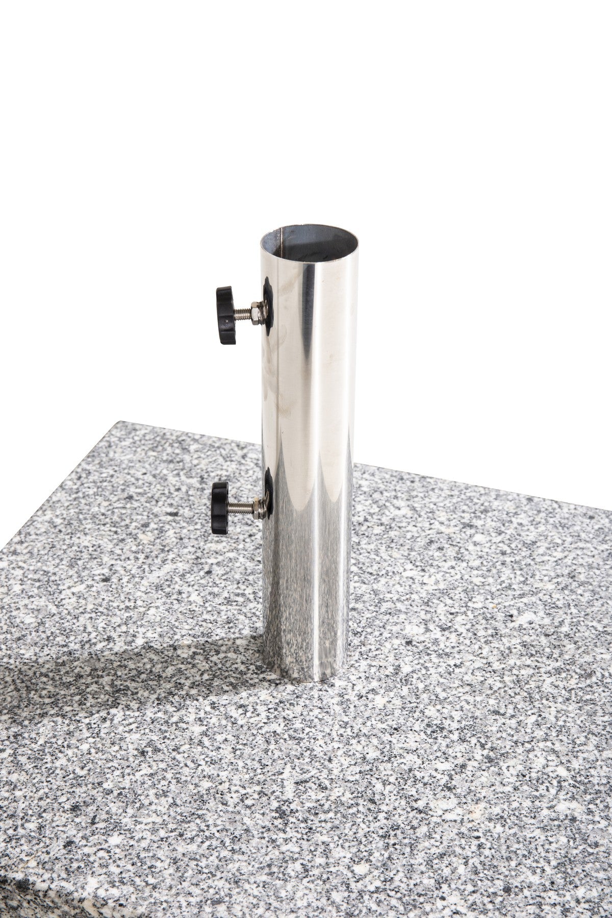 Geef je parasol een stevige en stijlvolle basis met de Nard parasolvoet. Deze smaakvolle parasolvoet heeft een marmerachtige uitstraling en is gemaakt van robuust graniet. Dankzij het handige handvat is de voet eenvoudiger te verplaatsen. Met een gewicht van 40 kg biedt deze voet optimale stabiliteit, zodat je parasol stevig blijft staan, zelfs bij een zomers briesje.