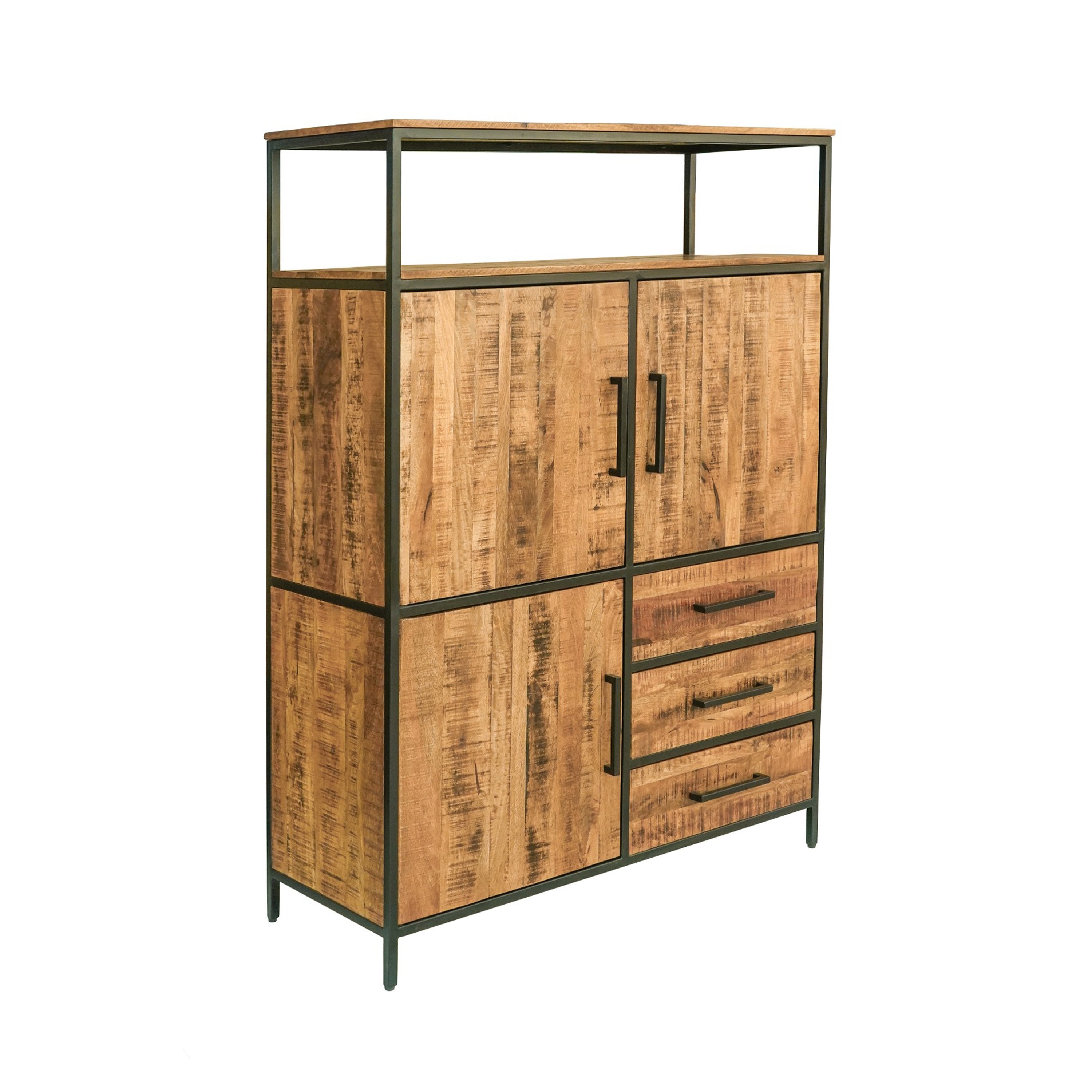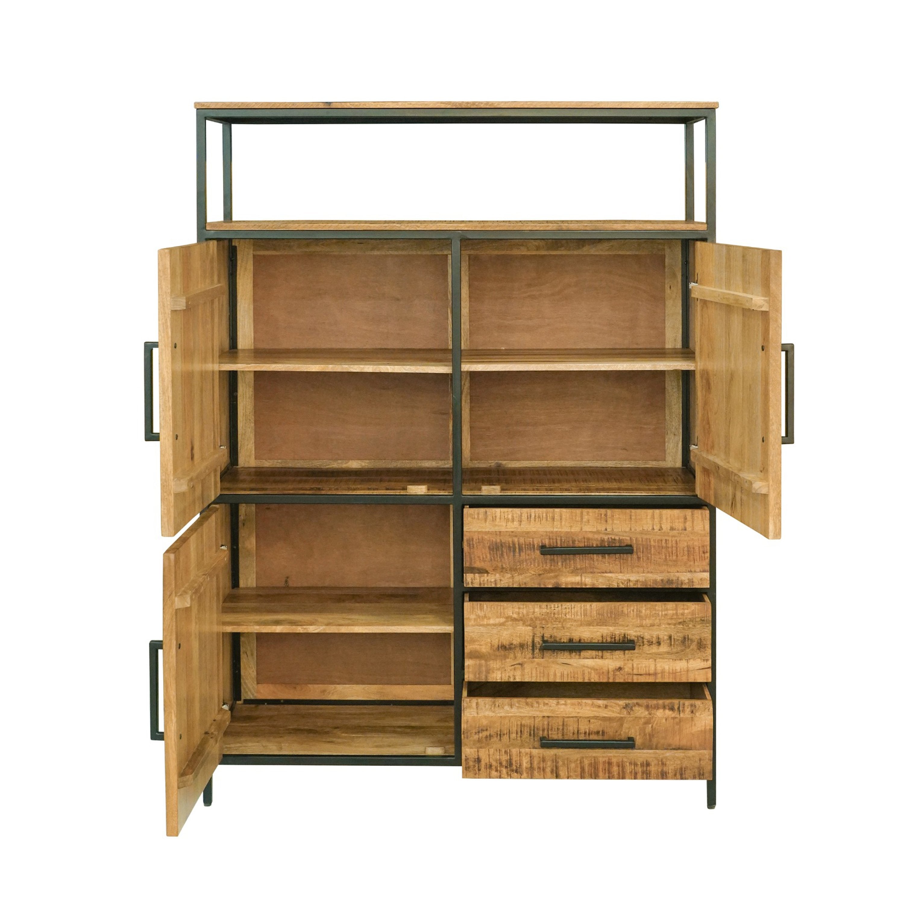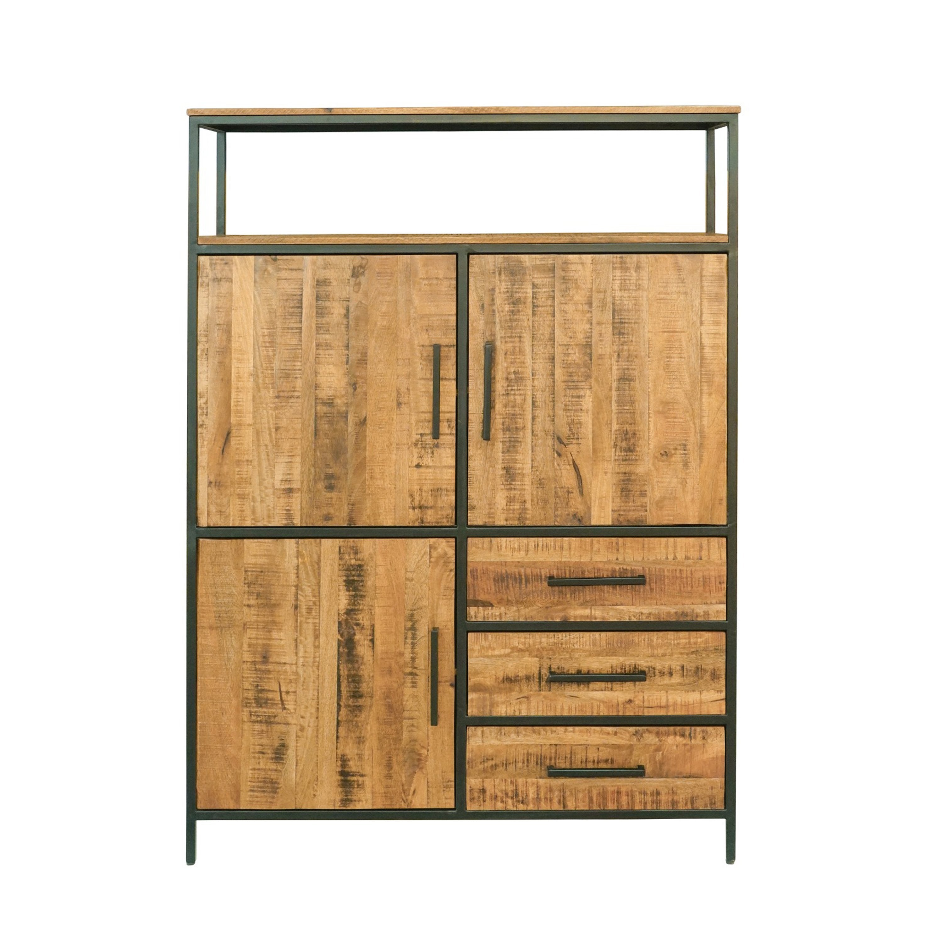De opbergkast uit The New Nomad collectie is gemaakt van zwart metaal in combinatie met robuust mango hout. Mango hout is duurzaam en milieuvriendelijk. Elk New Nomads meubel wordt met veel liefde handgemaakt in India en is dan ook uniek! De opberkast beschikt over 3 deuren en 3 uitschuifbare lades. De kast biedt meer dan voldoende opbergruimte voor niet alleen je dagelijkse benodigdheden, maar ook boeken, speelgoed van de kinderen en servies.