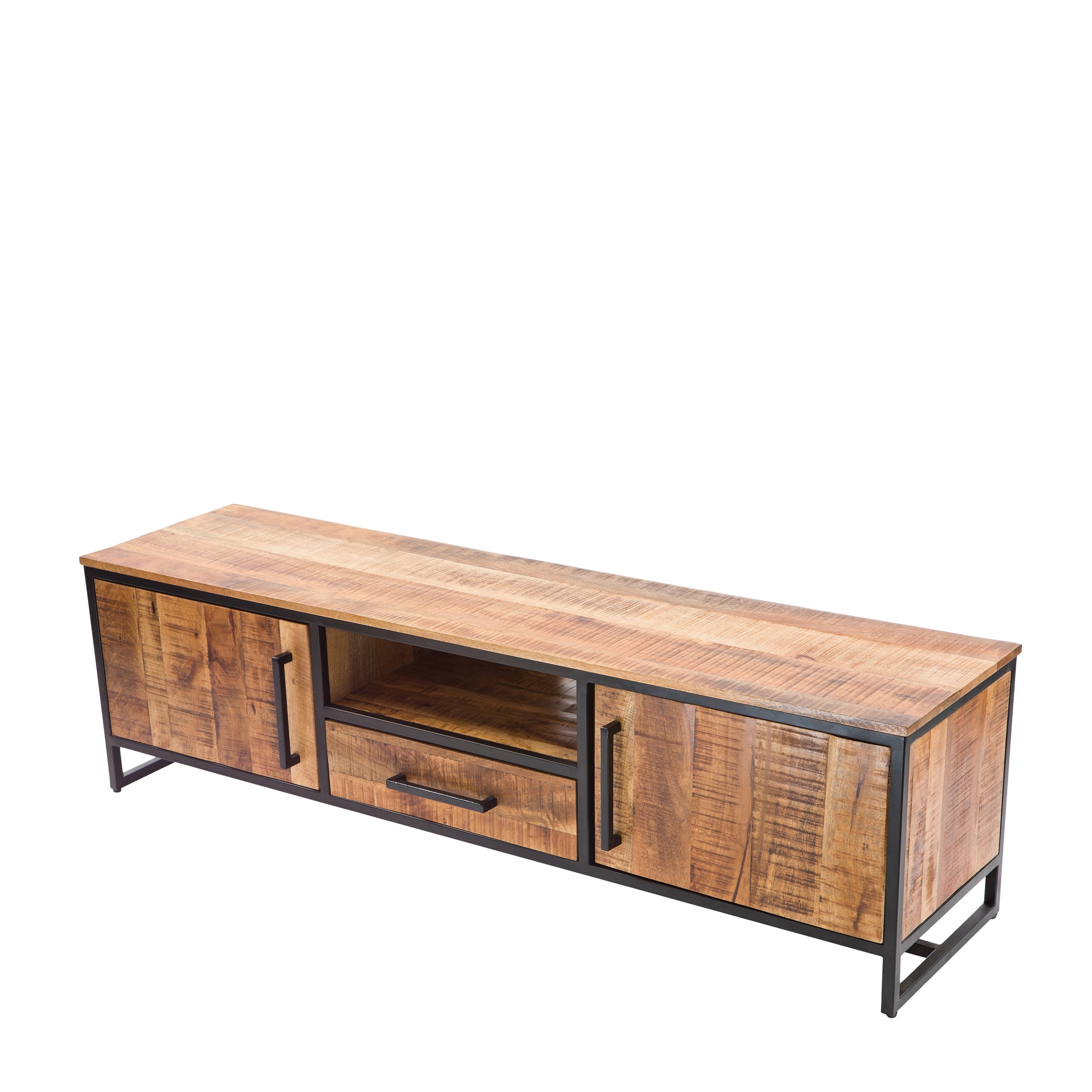 Het TV-dressoir uit The New Nomad collectie is gemaakt van zwart metaal in combinatie met robuust mango hout. Mango hout is duurzaam en milieuvriendelijk. Dit TV-meubel is ook verkrijgbaar als kleinere uitvoering. Het TV-dressoir Large heeft 2 deuren, 1 lade en 1 open vak. Afmetingen: 45h x 160b x 40d centimeter. Afmetingen open vak: 14h x 50,5b x 37d centimeter. In het open vak kun je ideaal jouw apparatuur in plaatsen. Achter de deur en in de lade kun je alle dagelijkse benodigdheden handig opbergen. Elk New Nomads meubel wordt met veel liefde handgemaakt in India en is dan ook uniek!