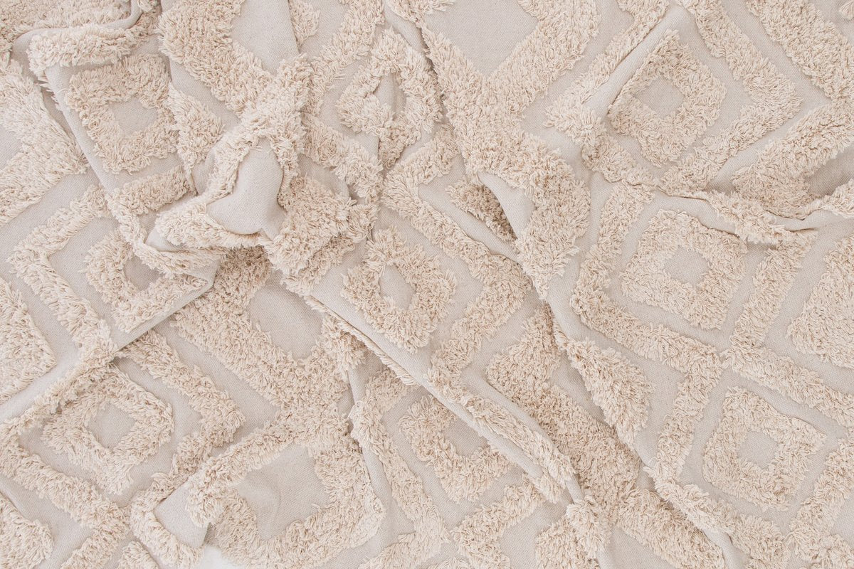 Breng warmte en stijl in je interieur met het Nostrum vloerkleed. Dit handgeweven katoenen vloerkleed is een waar kunstwerk, met een decoratief ontwerp en een beige kleurbasis die perfect combineert met de opvallende tuftpatronen in warme tinten. Het hogere polmateriaal voegt een luxueuze dimensie toe aan de ruimte, waardoor het vloerkleed niet alleen visueel een statement maakt, maar ook uitnodigt om je voeten erin te verstoppen.