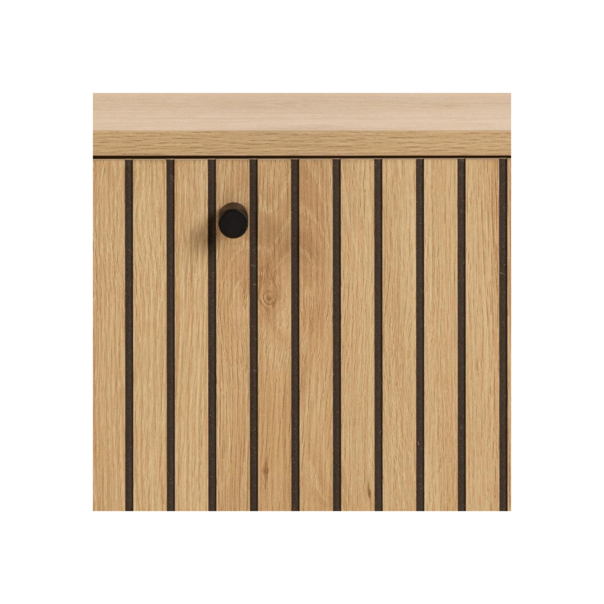 Geef je hal een stijlvolle boost met de Risley schoenenkast! Deze kast in een trendy eikenlook met een lamellenfront voegt zowel stijl als functionaliteit toe aan je entree. De combinatie van de gerookte eikenafwerking en zwarte stalen accenten zorgt voor een strakke uitstraling die in elke ruimte past.