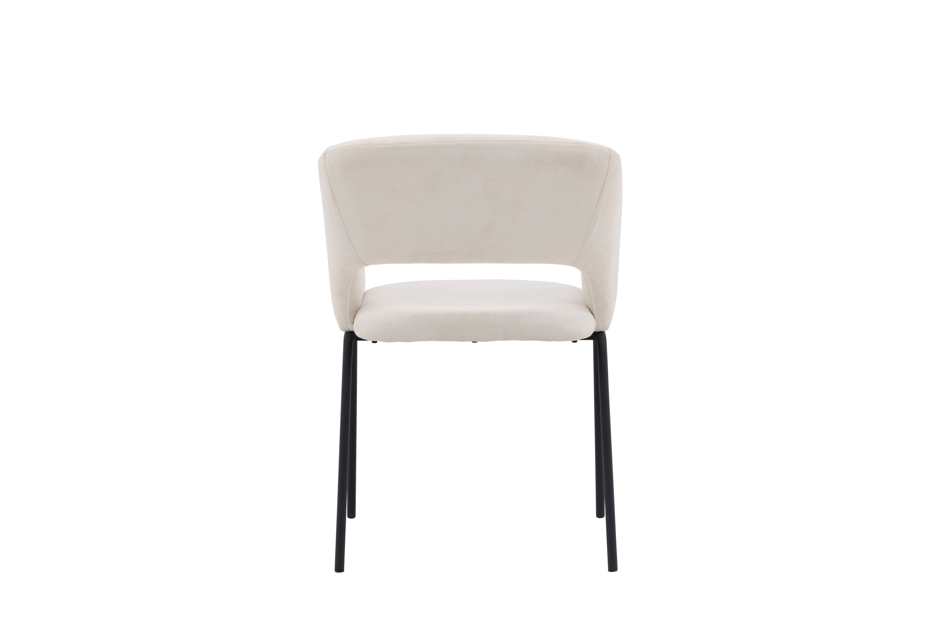 - De volledig beklede zitting met open rug is gemaakt van wit linnenstof en de stoelpoten zijn slank en van zwart staal.